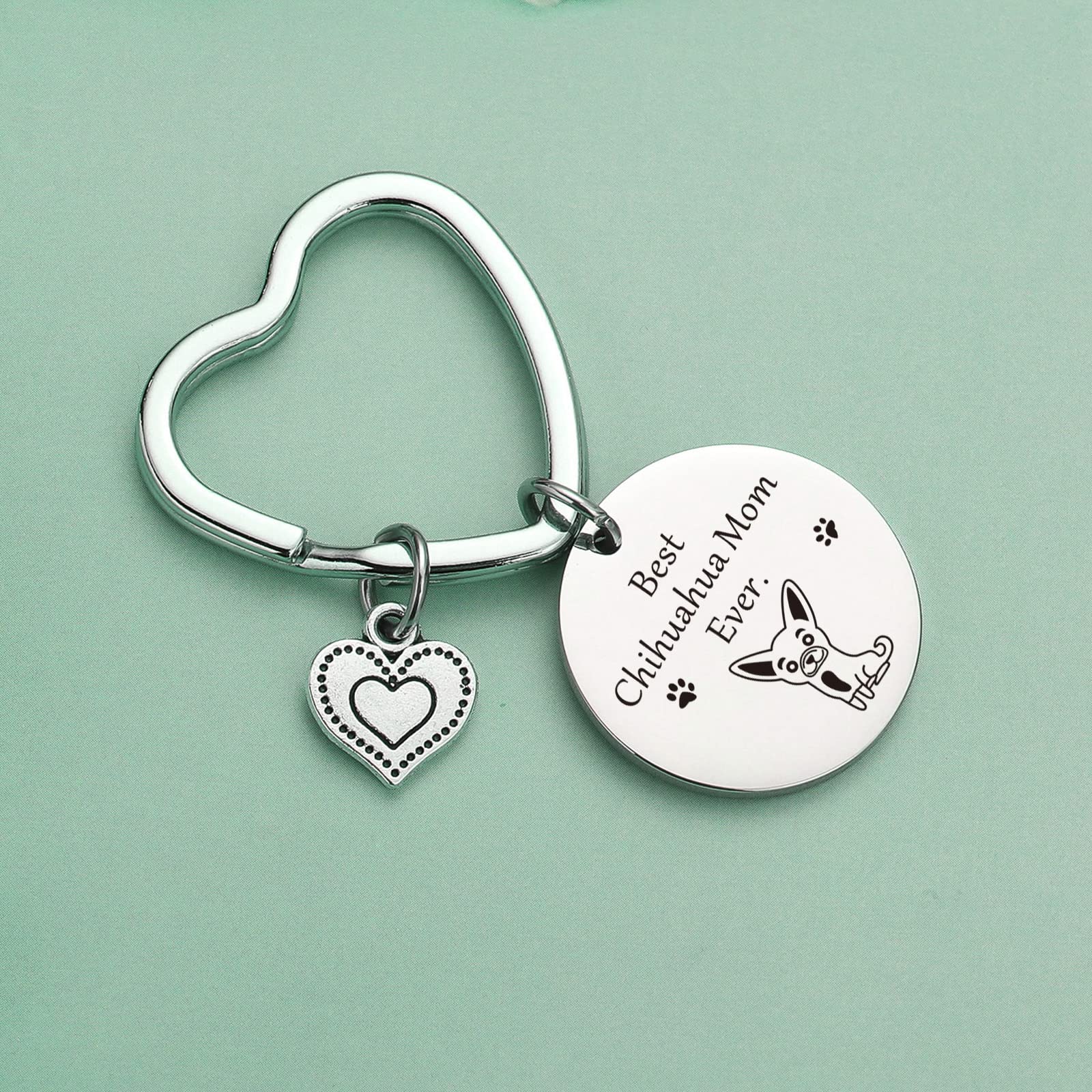 JIUSHUN Chihuahua Mom Keychain Made out of 316L stainless steel, harmony for health and safe for sensitive skin.