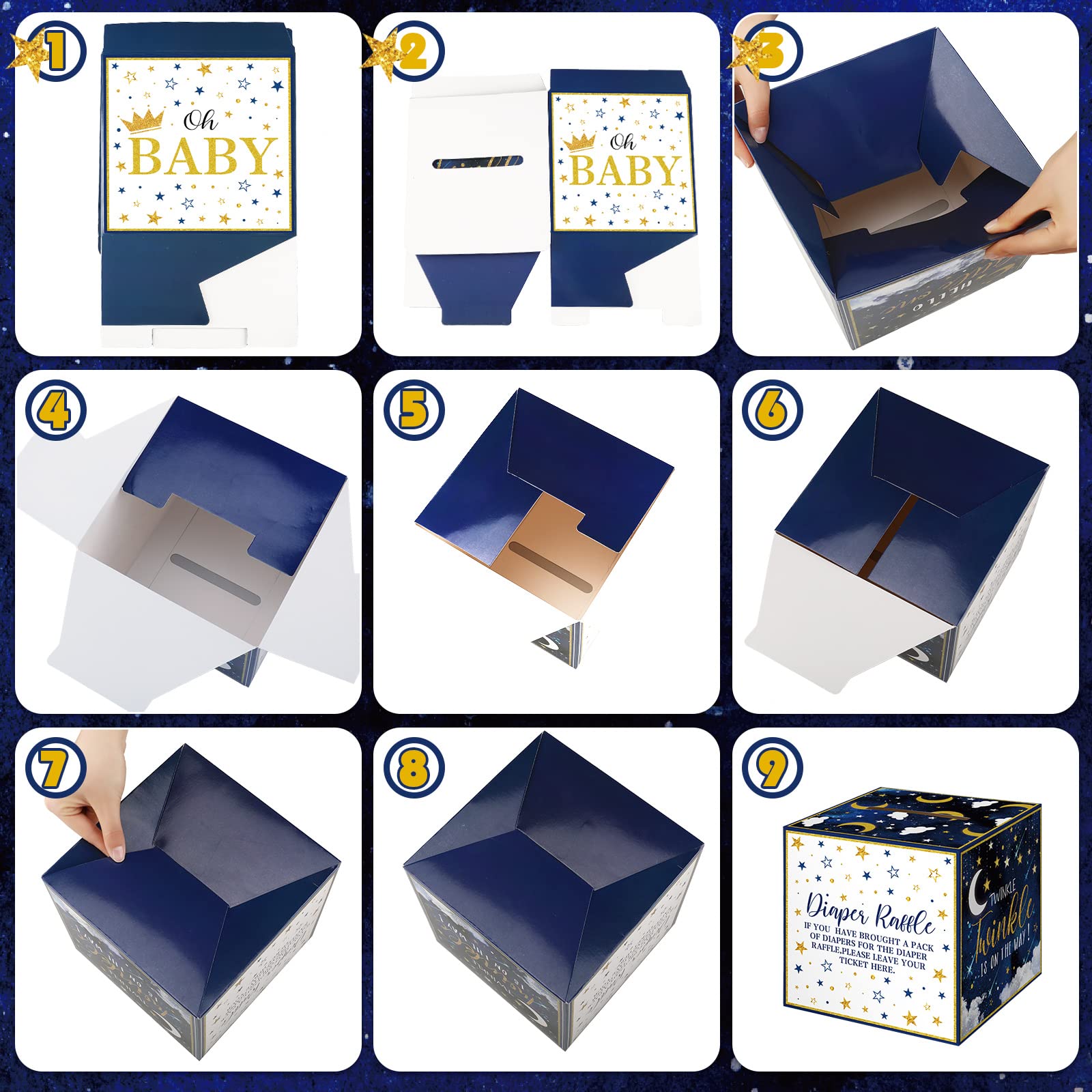 Easy to Install: you can easily install the raffle ticket box along the creases, or fold it in the correct way as shown in the picture, simple and convenient; After that, you can put the diaper raffle cards into the box through the slot on the top