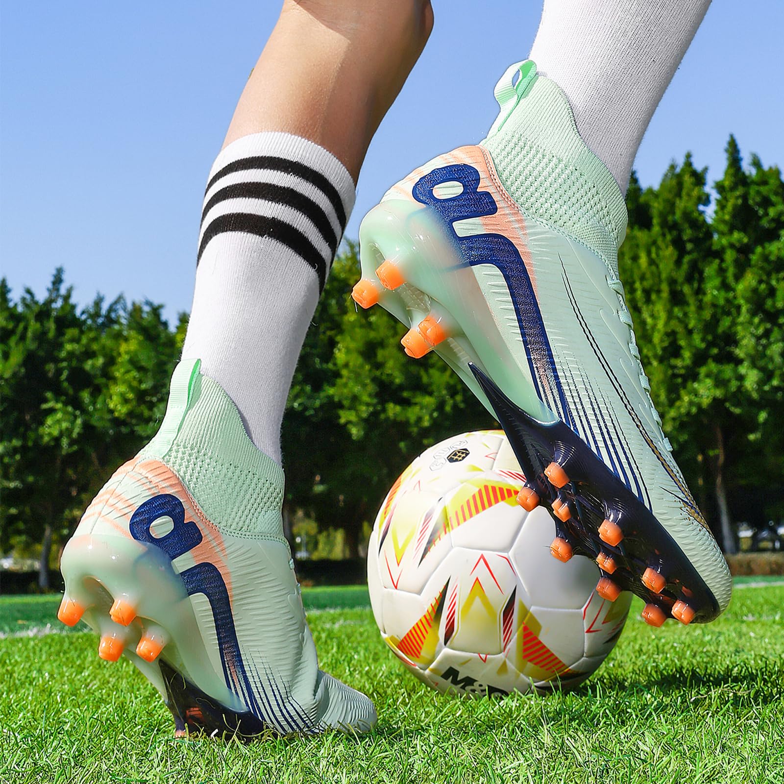 Engineered for youth, teen, and adult athletes, these multi-terrain football shoes conquer match play on soft ground (SG), firm ground (FG), natural grass, rubber turf fields, and artificial turf with tournament-ready versatility.