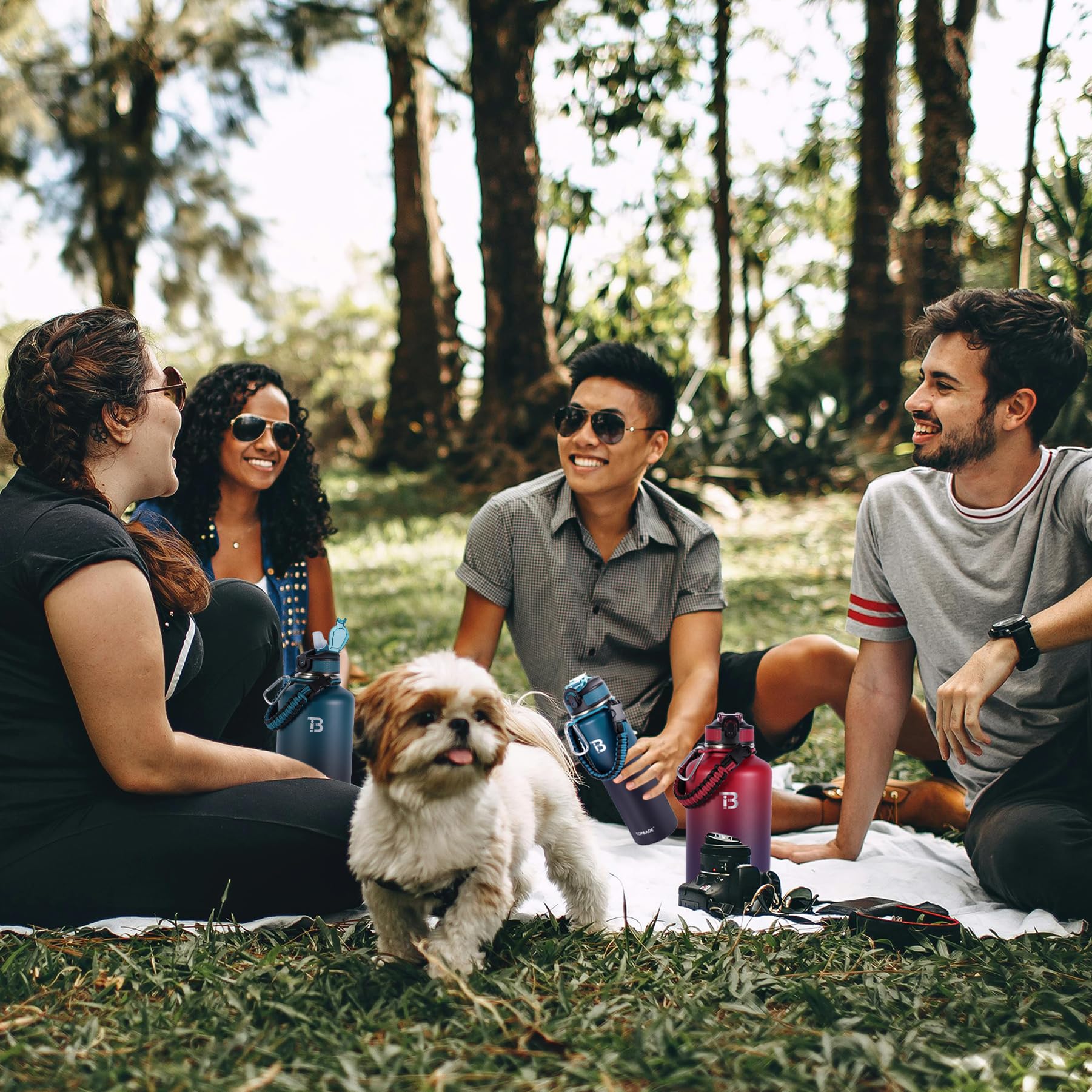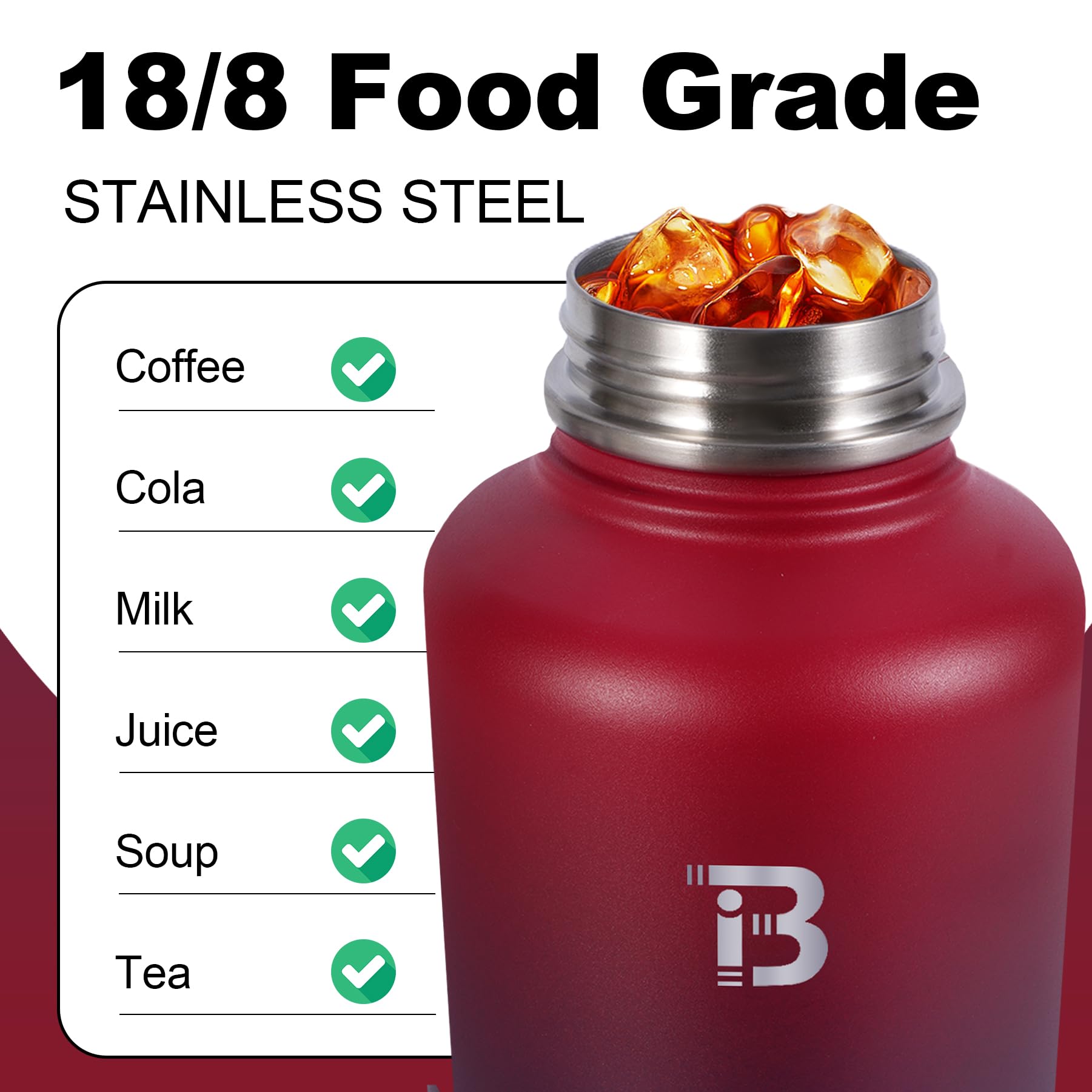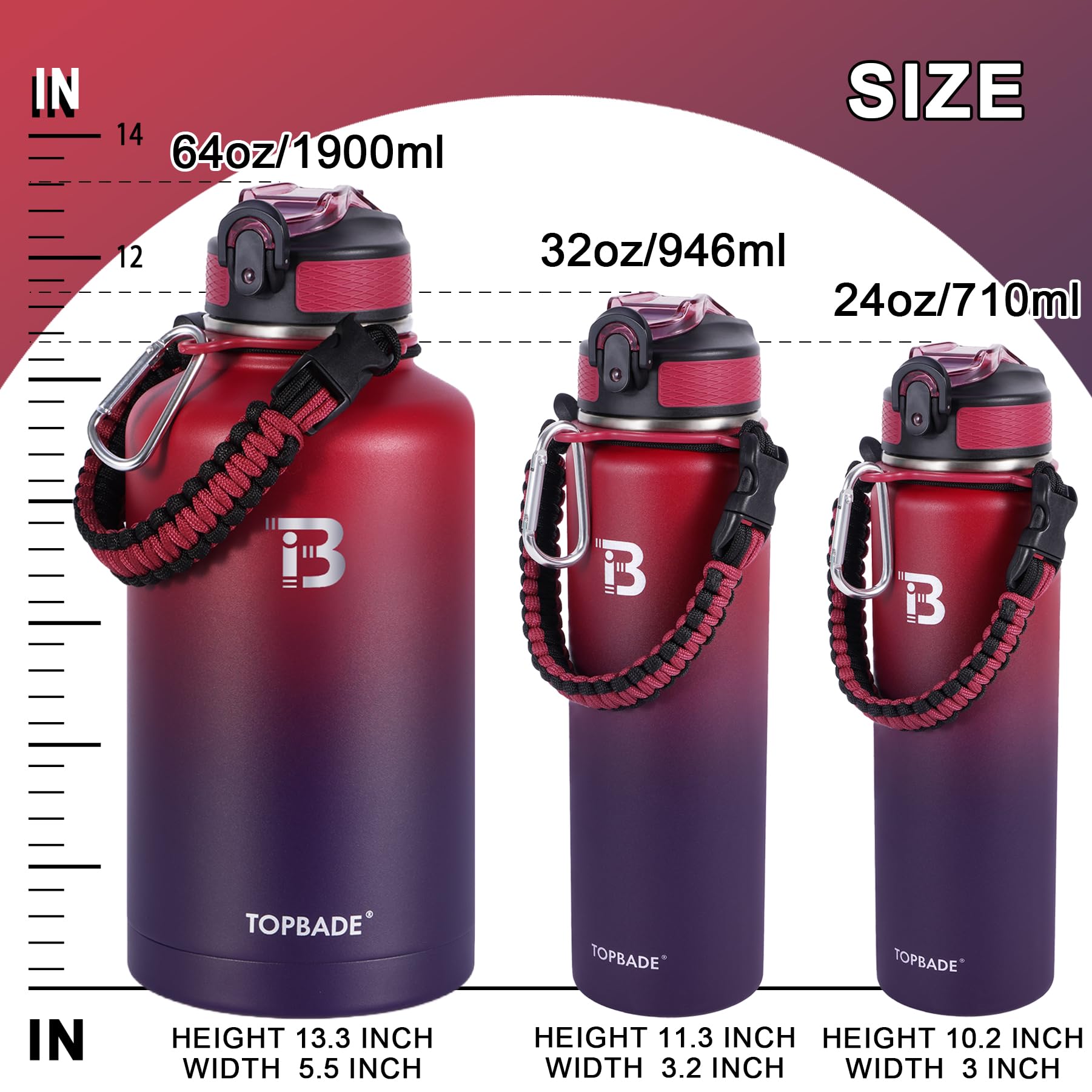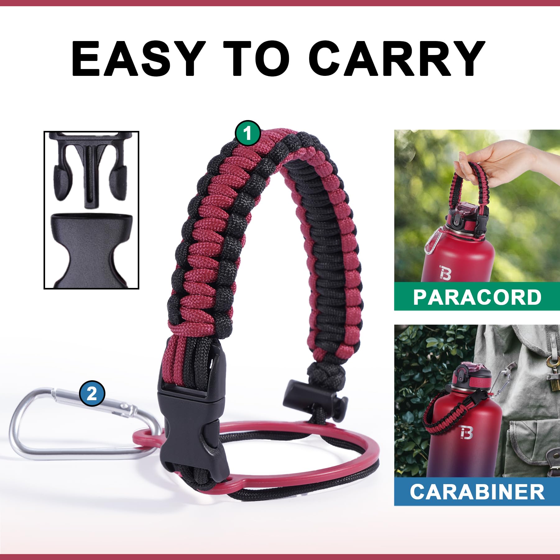 Insulated Water Bottle 64 oz, Double Wall Vacuum Stainless Steel (Cold for 48 Hrs), Leak Proof & BPA-Free, Half Gallon Water Flask Jug with Paracord Handle & Straw Spout Lids