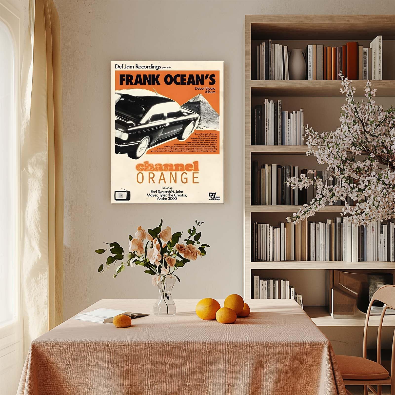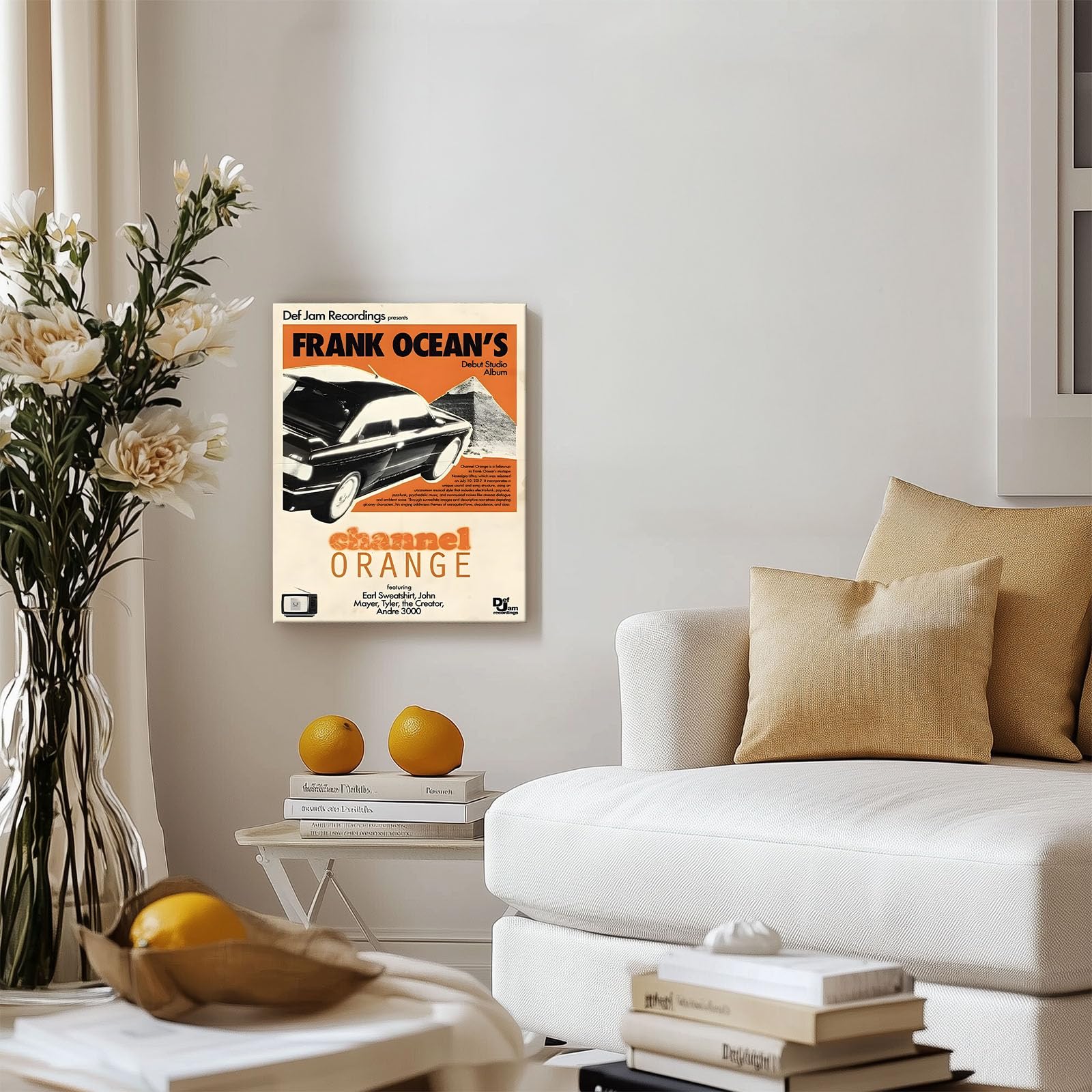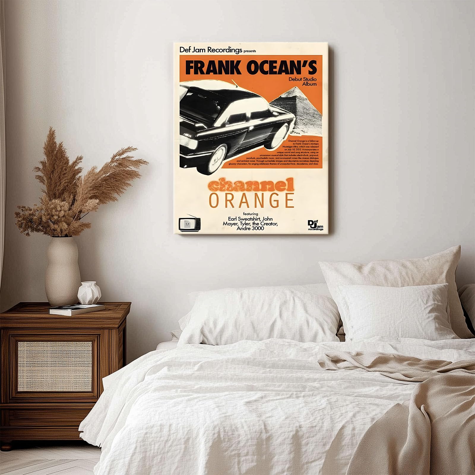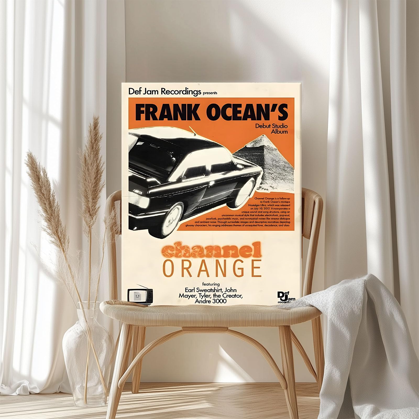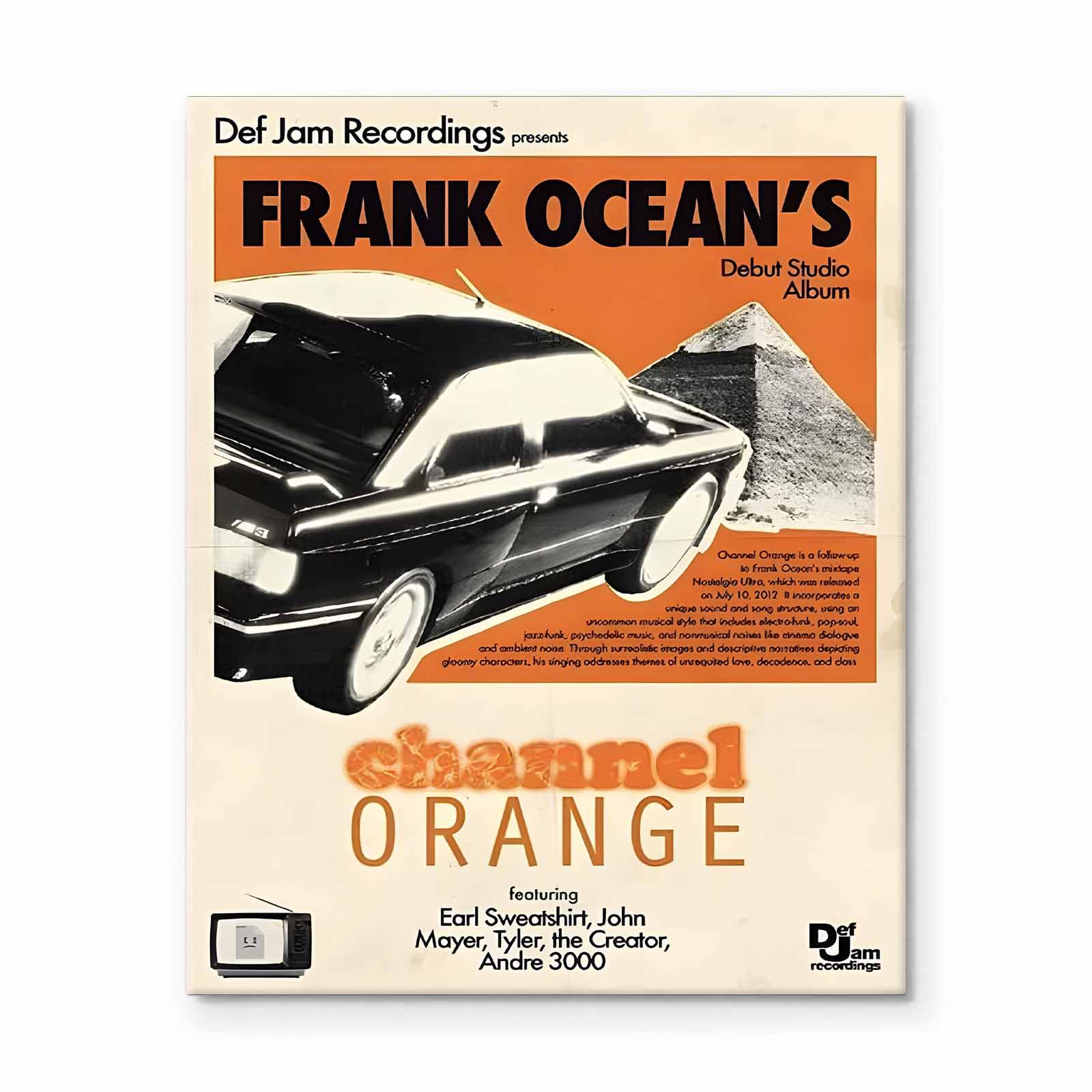 Nostalgic Music Print Wall Art: Featuring Frank Ocean's iconic Channel Orange album cover, this retro canvas print adds a touch of music culture to your living room, bedroom, or personal music space.