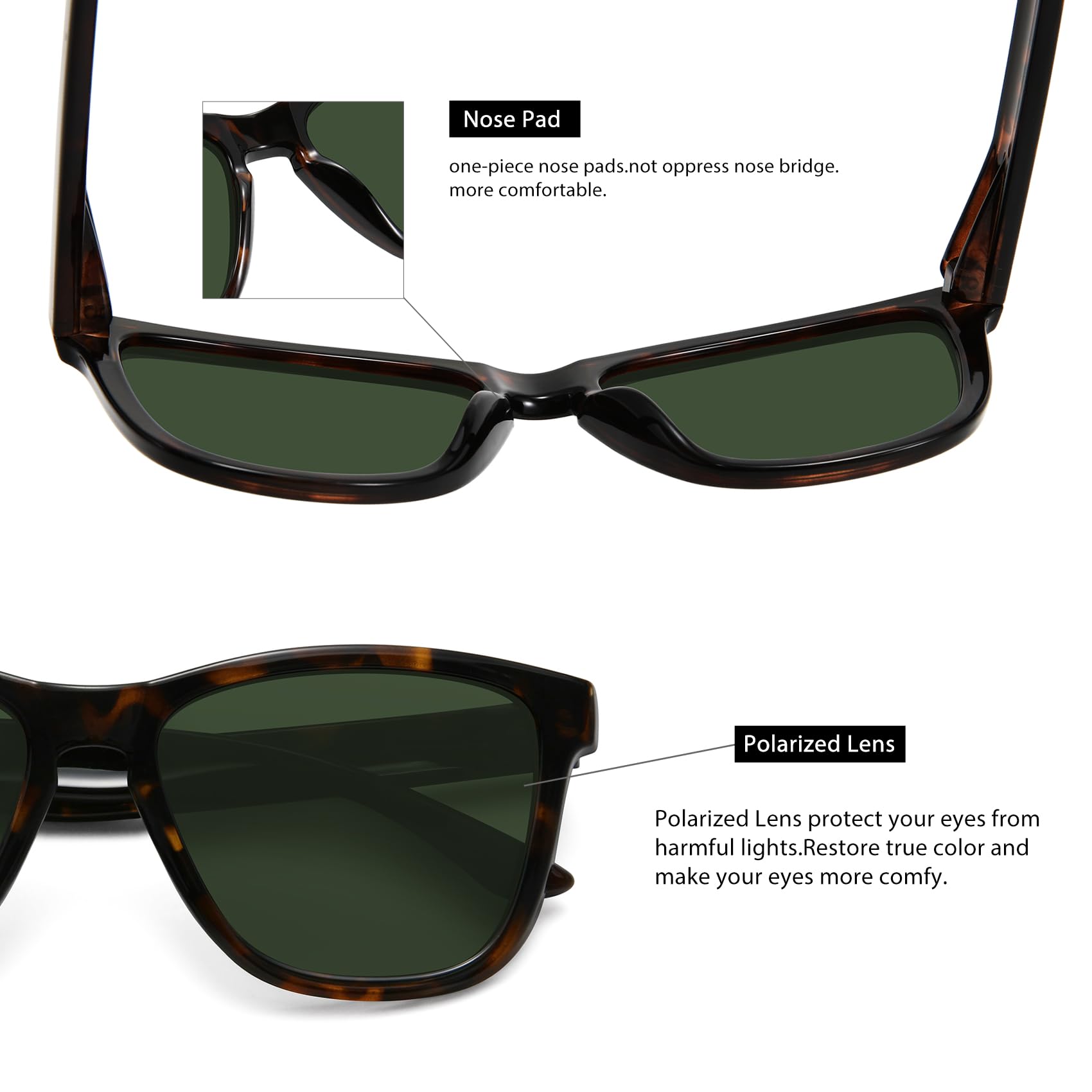 TAC polarized lens reduces glare, enhances true color, and protects eyes.