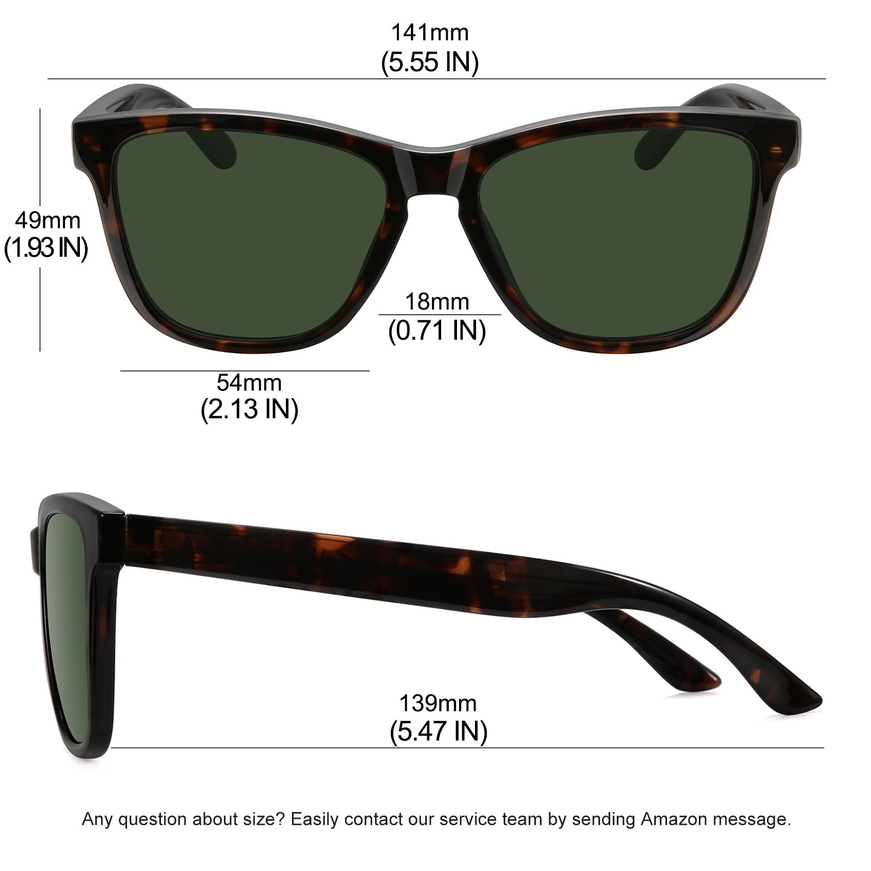 Specs: lens width: 54mm, lens height: 49mm, temple length: 139mm, bridge width: 18mm.