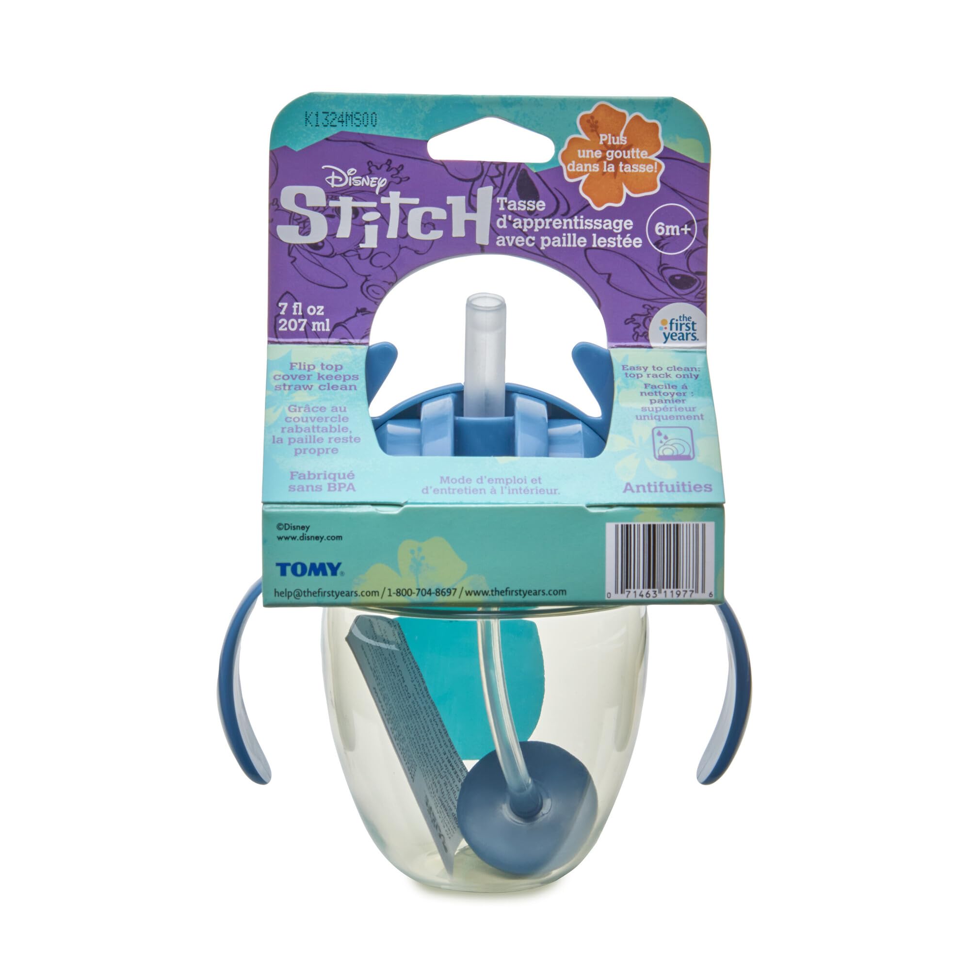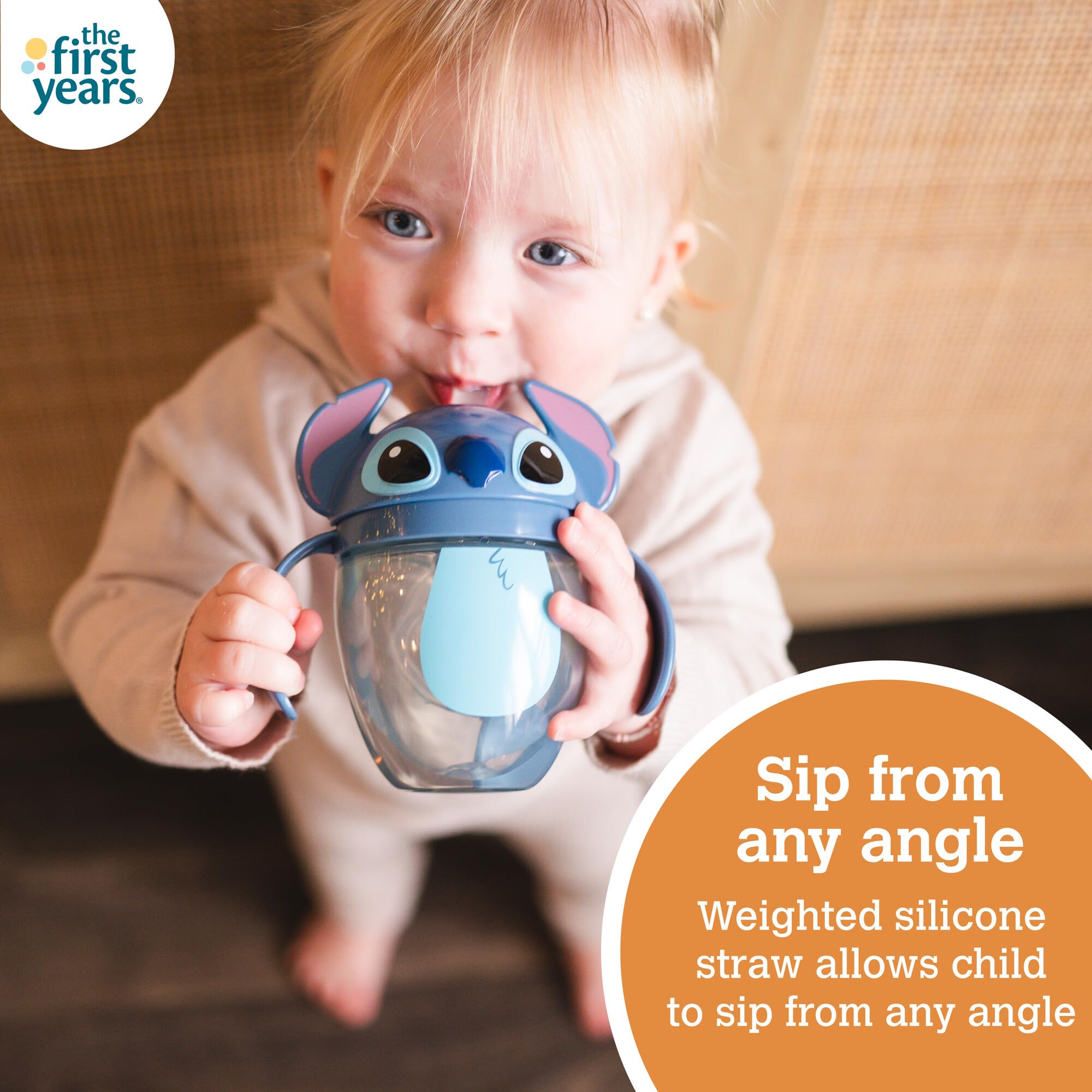 Stitch helps babies learn to sip from a straw with The First Years Weighted Straw Sippy Cup! This Stitch baby cup makes sure no drop is left behind thanks to the weighted straw that stays in the liquid for easy sipping as your baby learns to drink. Even as your little one tips the baby cup from side to side, the weight stays in the right place. This baby sippy cup's training handles make it easy for little hands to hold on to and the flip top on the sippy cup straw does double duty by keeping the straw clean and keeping the drink inside the kids' cups on the go when it’s closed. Your little one will love sipping with Stitch with one of these colorful and fun kid cups in their hands. And after your baby's done with a busy day of sipping and exploring, you'll appreciate the toddler cup's dishwasher-safe design that makes these toddler drinking cups easy to keep clean. This cute baby straw cup is the perfect solution for little ones transitioning from a bottle or toddlers learning to drink from a straw while transitioning from standard baby sippy cups. It also makes a great gift for Disney fans ages 6 months and up.