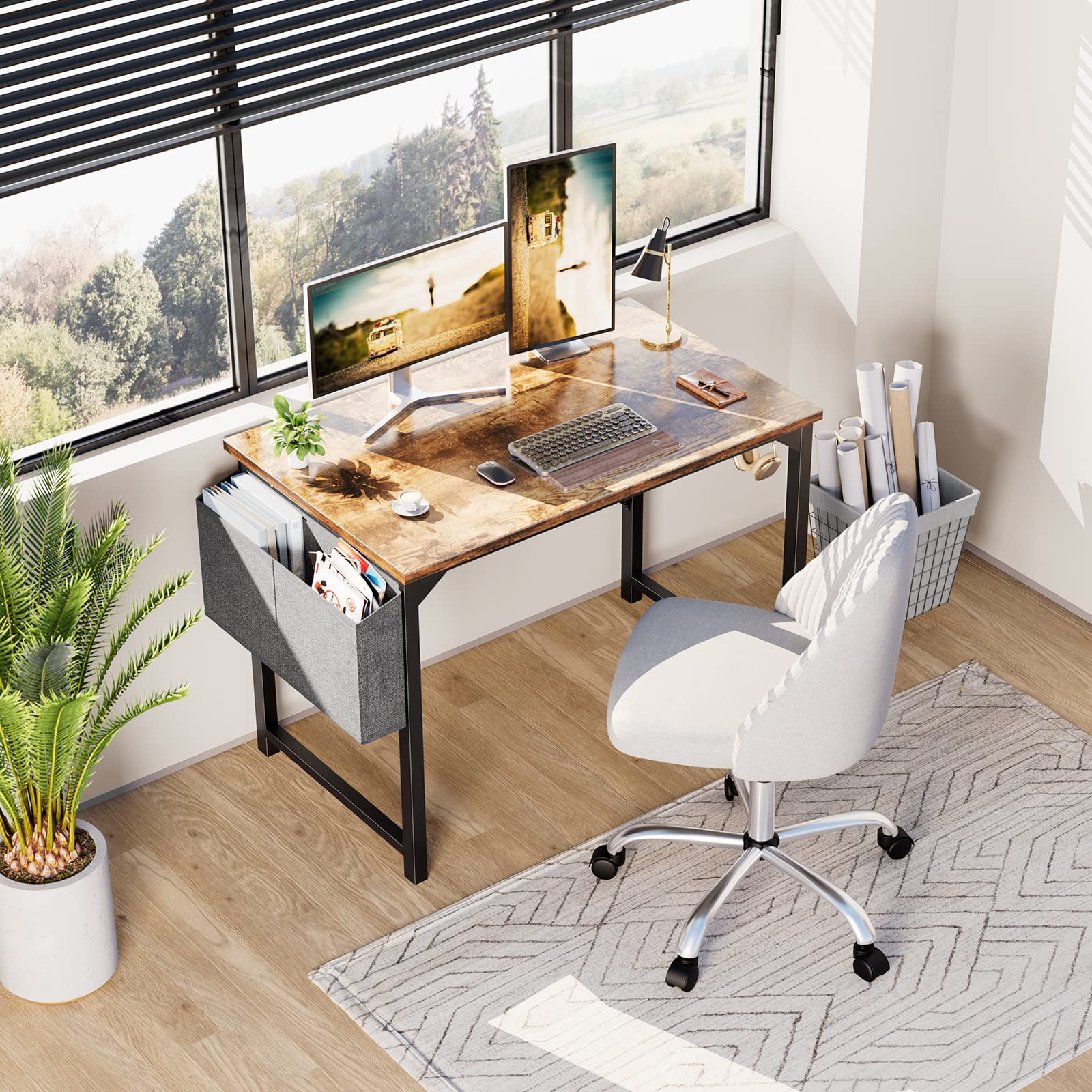 Multipurpose Storage: The home office desk is equipped with additional storage bag and hook, expanding the storage space. The bag can be used to organize various items such as miscellaneous items, books, and files, while the hooks provide convenience for hanging headphones, umbrellas, etc, effectively ensuring a clean and orderly desktop