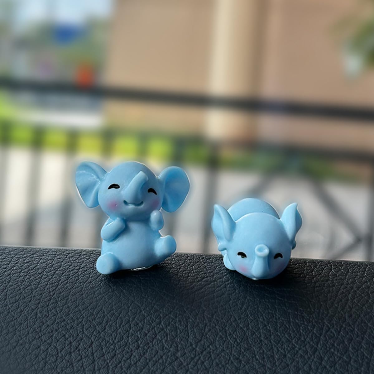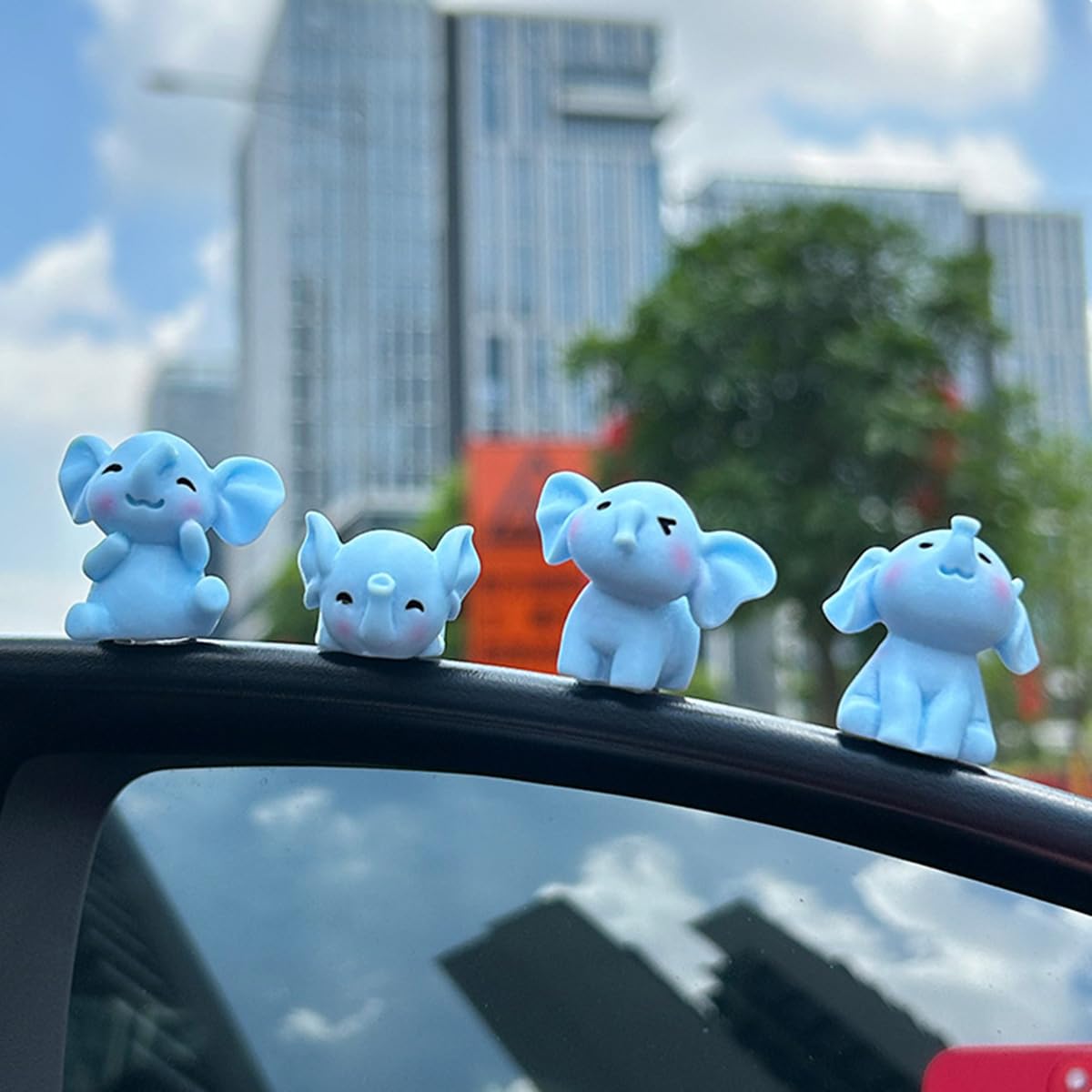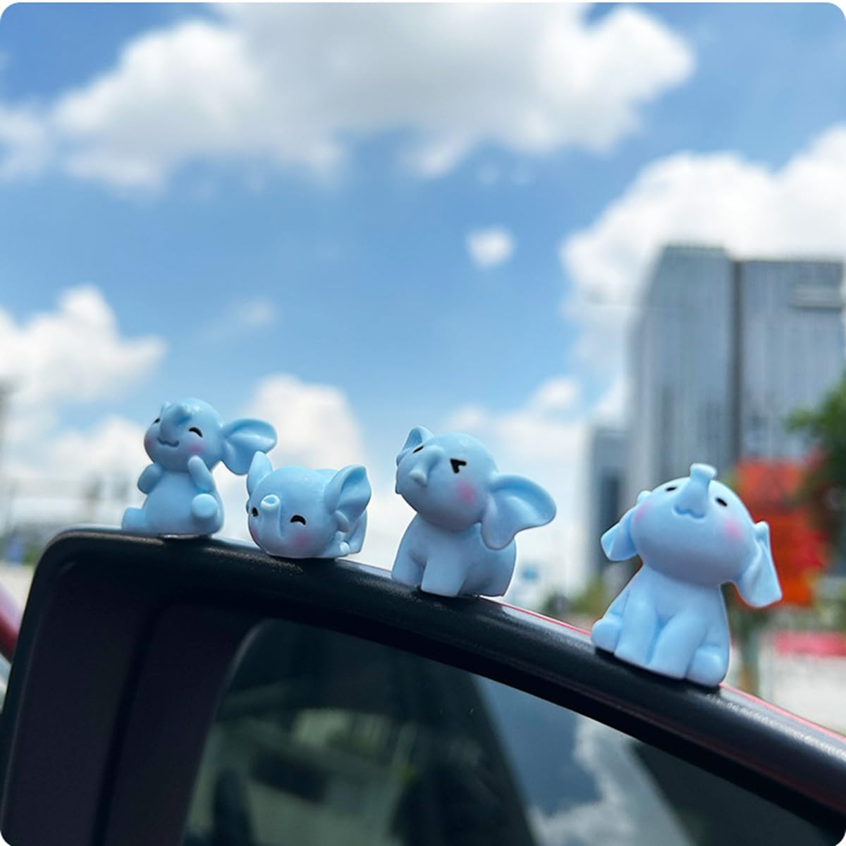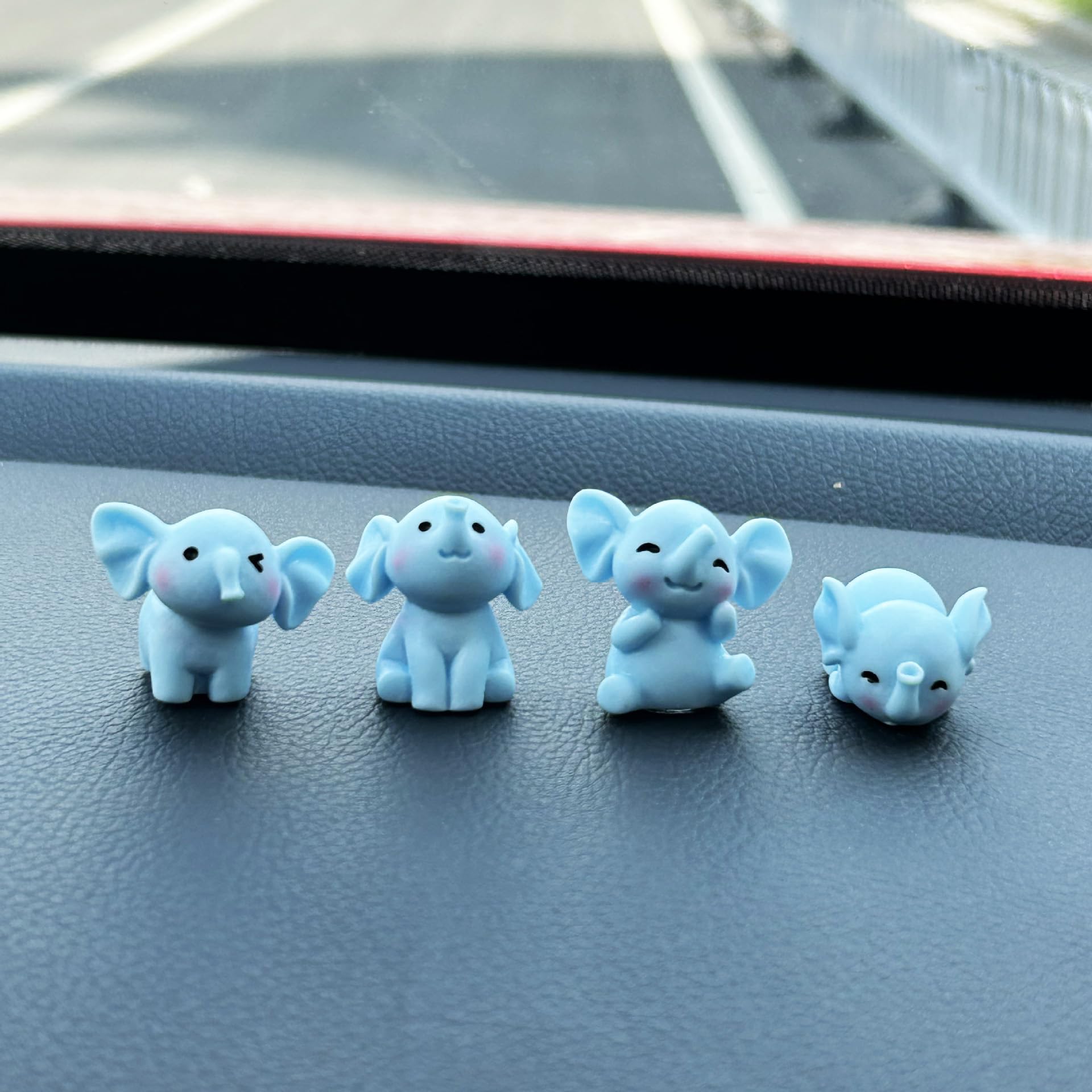 Adorable Design: Set of 4 mini resin elephants decor with cute expressions and pastel blue color, perfect for car interior decor.