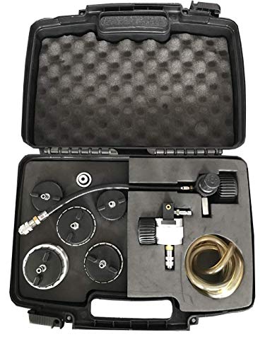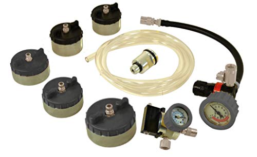 Our Kit is designed for use with Freightliner, International, Kenworth, Peterbilt, Volvo, GMC and Sterling cooling systems Use shop air to maintain constant pressure to the cooling system during testing and refill Helps eliminate the complications often experienced with unreliable rubber plugs or bladders, saving setup time and providing more accurate test results Quick Disconnect vacuum attachment allows rapid refilling of the cooling system Includes Heavy Duty Vehicle adapters, pressure test regulator, vacuum refill attachment with tubing, all in a durable storage case