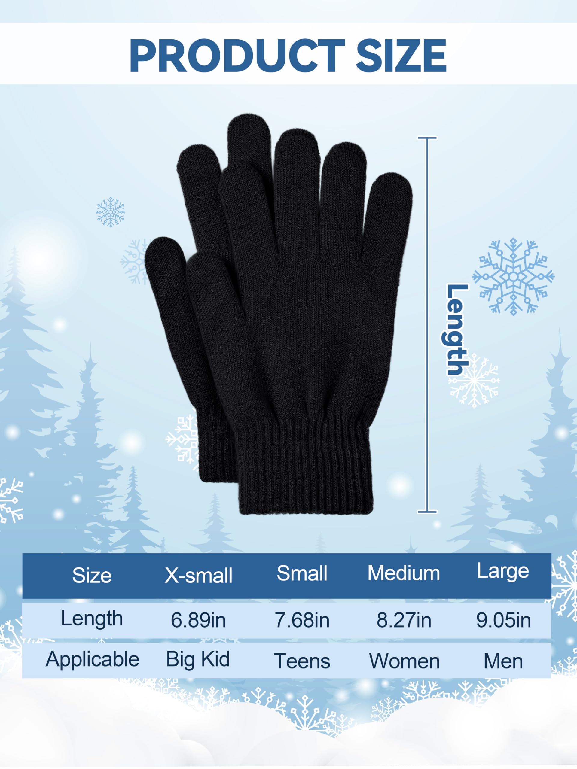 MULTIPLE QUANTITY MATCH: Each pack contains 12 pairs of adult knit magic gloves, providing sufficient quantity to keep backup gloves in jacket pockets