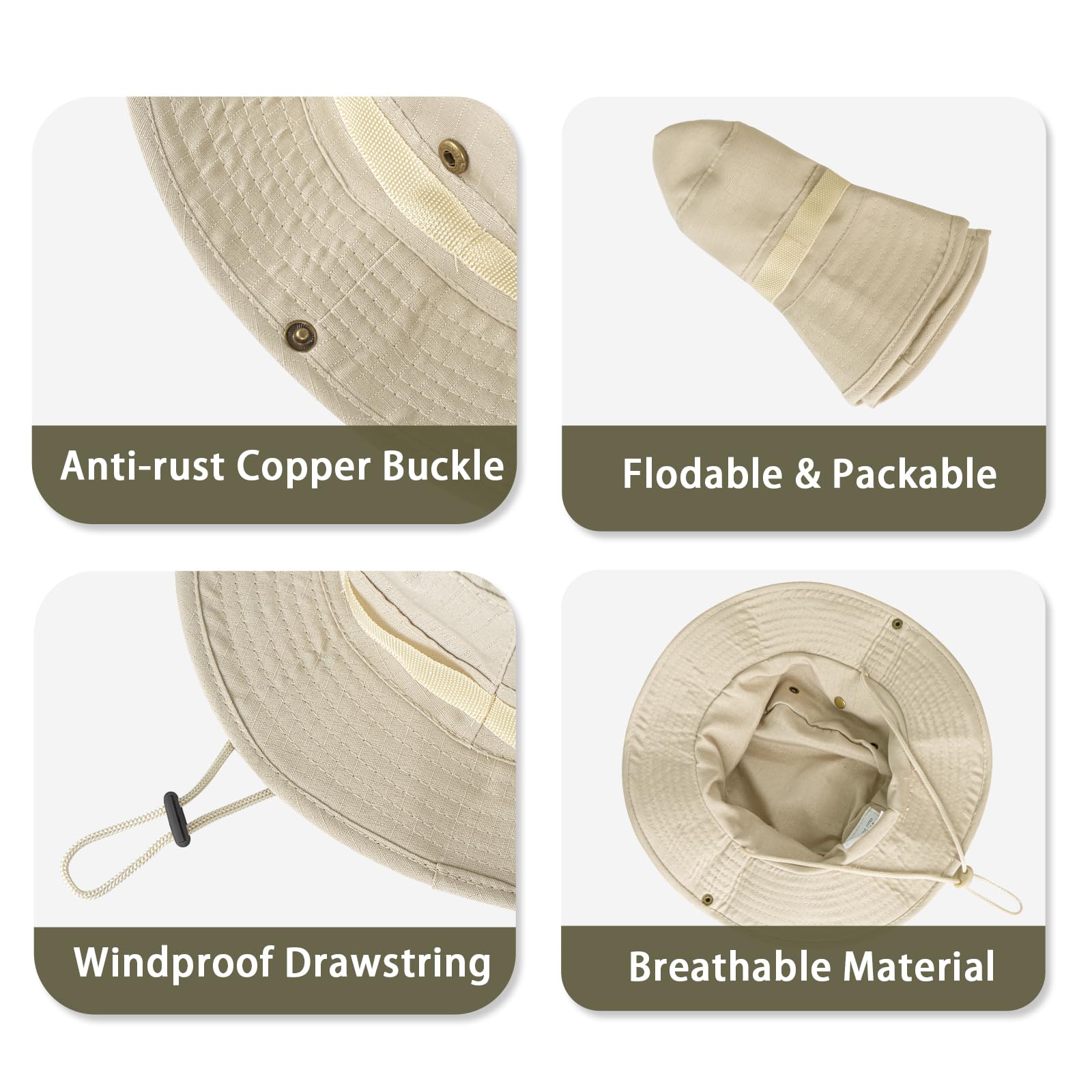 TWO DESIGNED WEARING WAYS - Our unisex bucket hat has two ways to use it. Both sides are designed with rust-proof Pop-In buttons for easy conversion to Sheriff / Cowboy style. When the brim is buttoned up, it's a cowboy hat. Loosen it, which will be a fashionable sun-proof safari hat/fisherman hat for men and women.