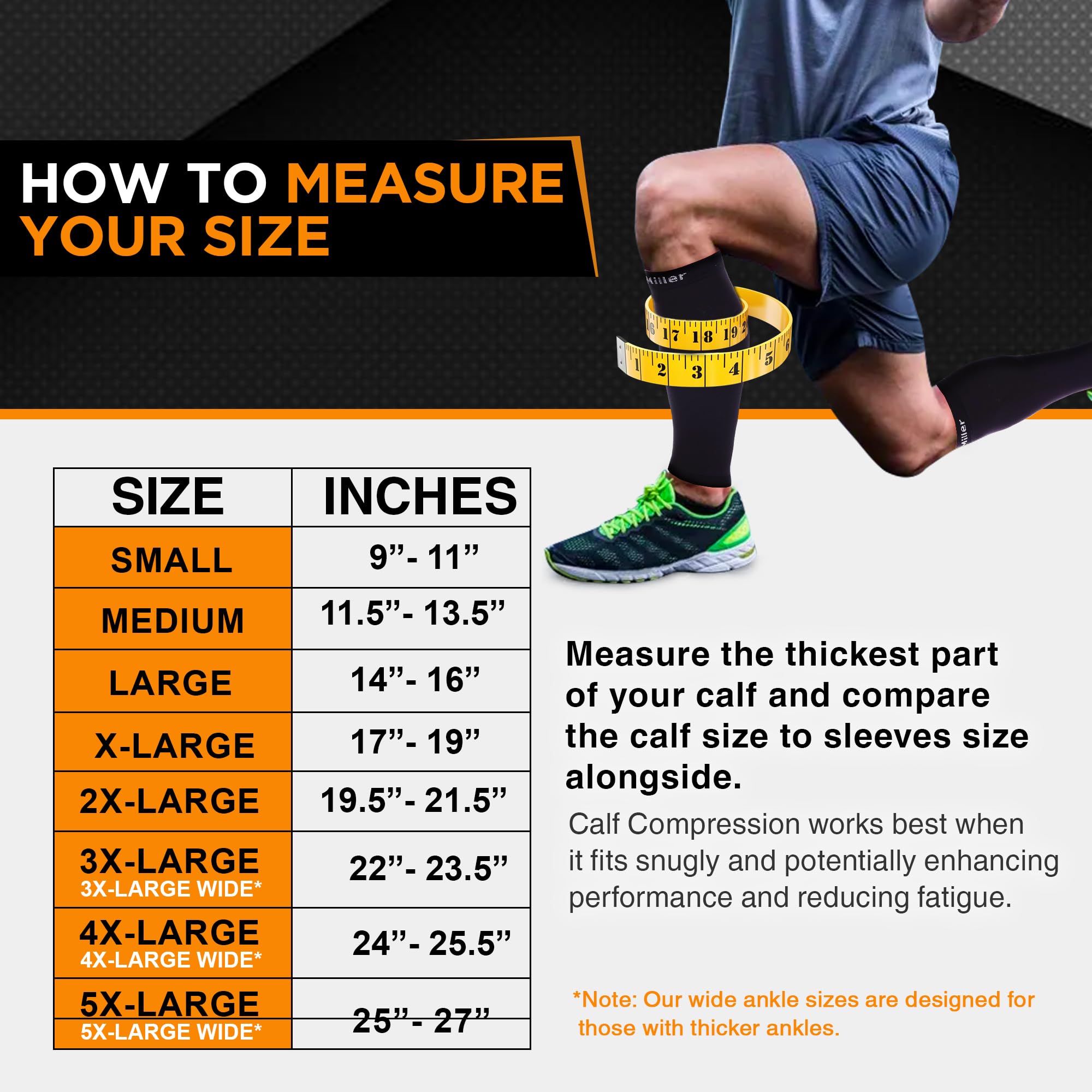𝐀𝐕𝐀𝐈𝐋𝐀𝐁𝐋𝐄 𝐢𝐧 𝐒𝐈𝐙𝐄𝐒 𝐔𝐏 𝐓𝐎 𝟓𝐗𝐋: These compression calf sleeves for men and women, which is also a wide calf compression socks, can be a great option for plus sizes, providing a comfortable, supportive fit for larger legs. If you have swollen legs, consider sizing up for the best fit.