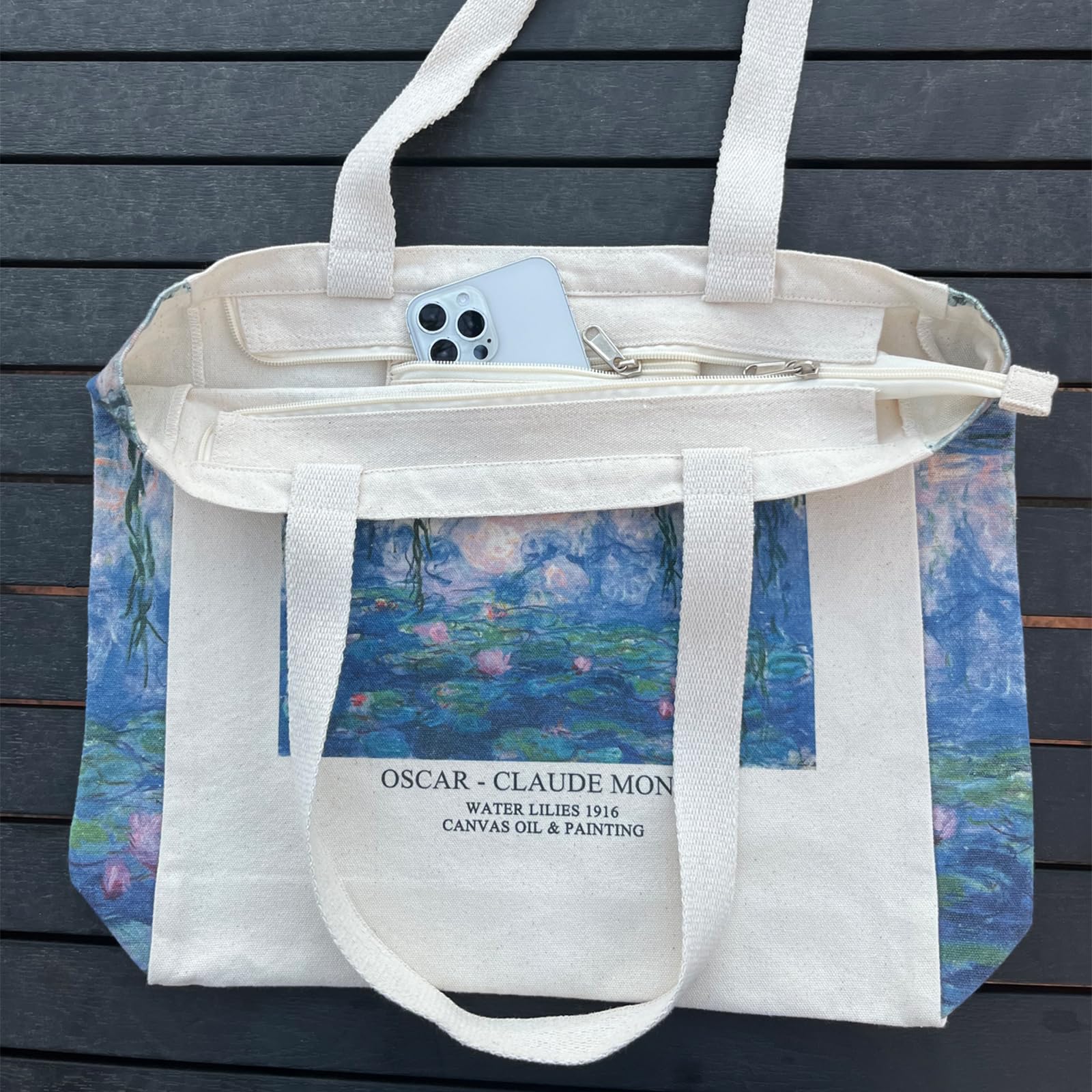 [Canvas and zipper structure] - There are 1 main compartment and 1 inside pocket. Reinforce the seams to strengthen the connection between the shoulder strap and the bag. The top closure of the bag has an anti-theft metal zip. Opening and closing this bag is comfortable and elegant.