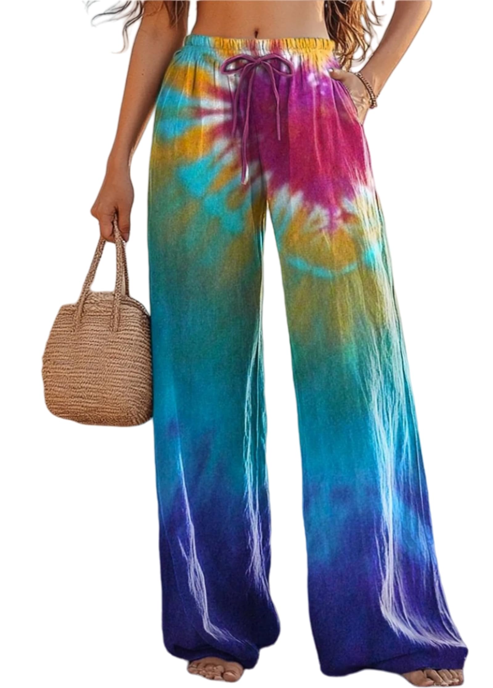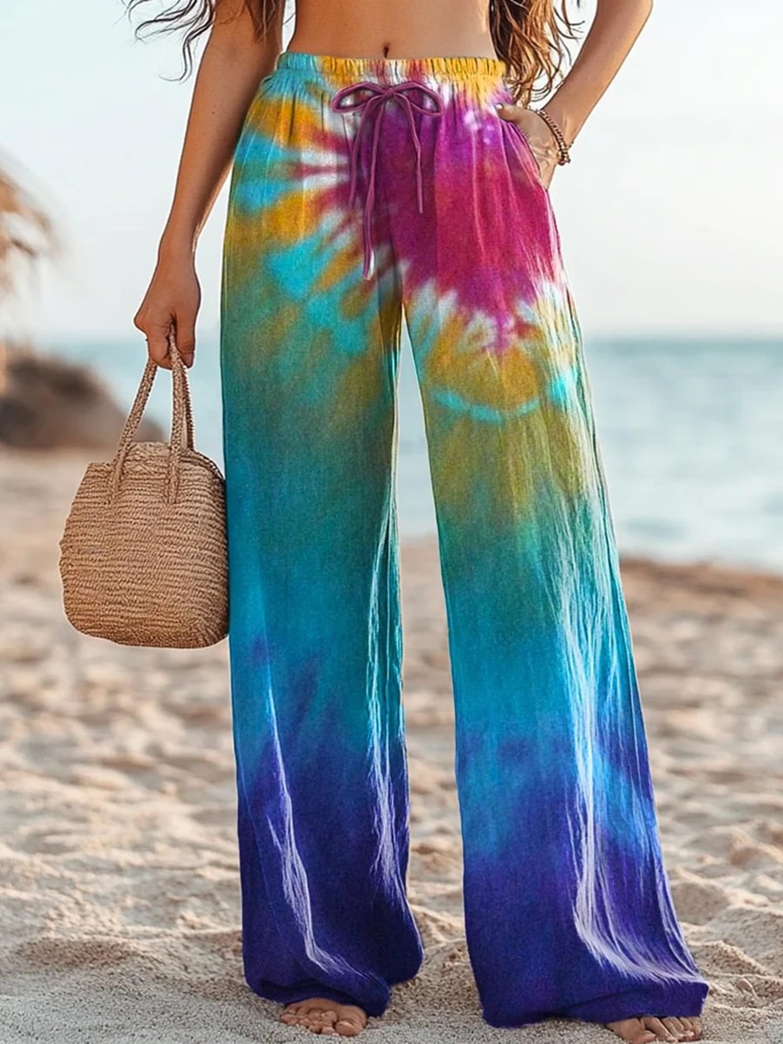 Style: Elastic Waist Pants, High Waisted, Wide Leg, Elastic Waistband, Drawstring, Tie Knot Front, Easy to Pull On, Loose Fitting, Soft Linen Cotton Casual Pants. Easy to Wear and Suitable for Most People.