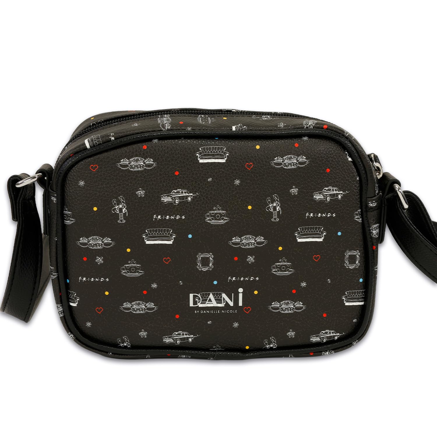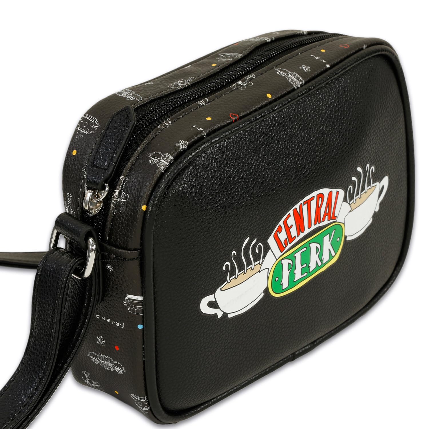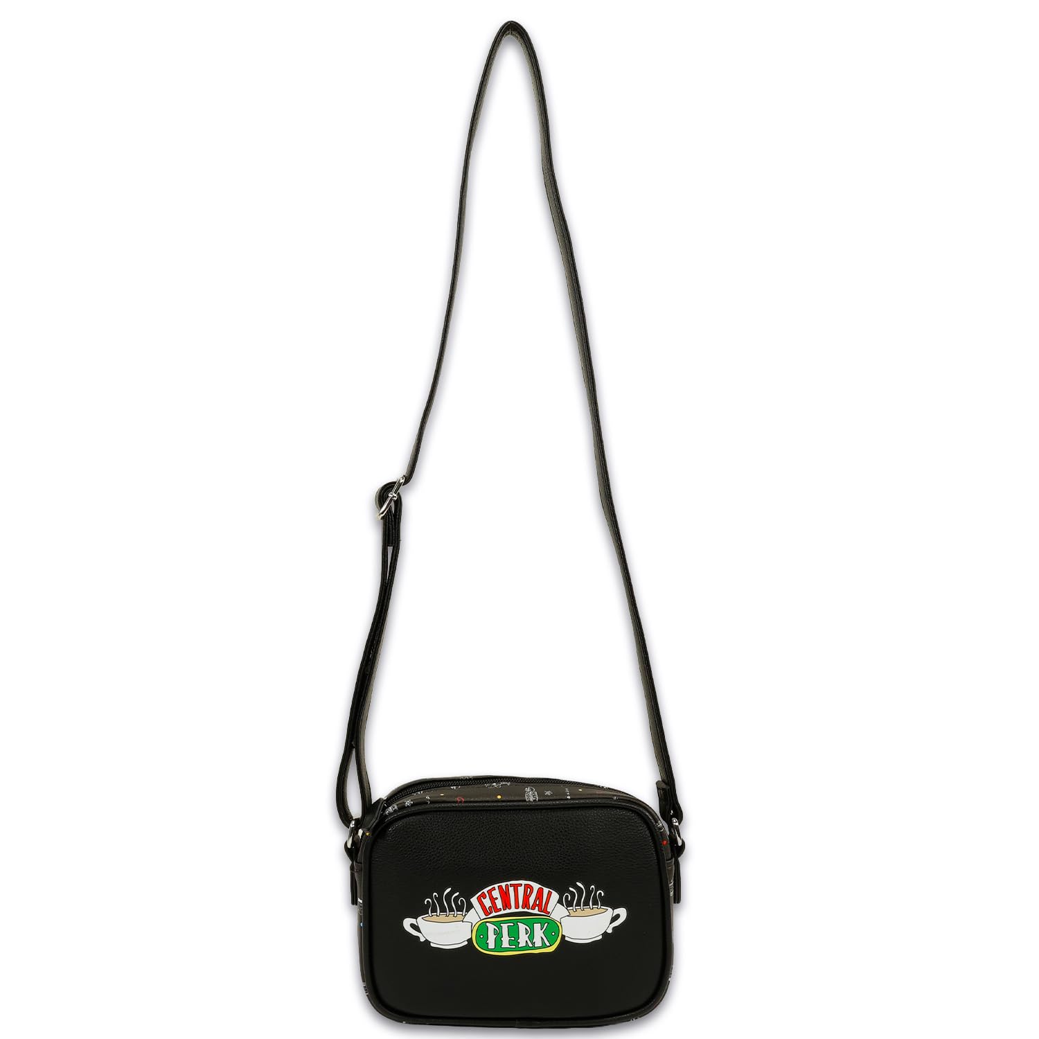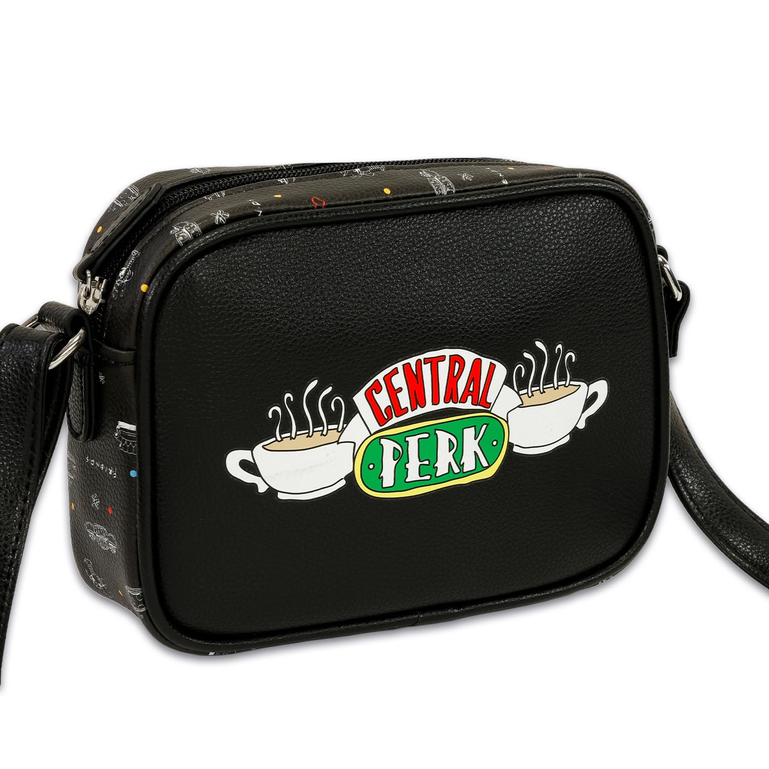 Description Friends Purse for Adults - Accessories Handbag Bundle with Central Perk 9" Crossbody Bag for Women Plus Bookmark | Friends TV Sitcom Merchandise. This Friends crossbody bag for women includes 1 bag with artwork of Central Perk, a zip closure compartment, and a long strap, perfect for wearing on your shoulder or across your chest. Perfect for teens and adults, this Friends cross-body purse is the ideal size to carry everything you need with you when heading out for the day. Sure to be a hit with all Friends fans, this Friends purse is great to give to your favorite Friends enthusiast. Officially licensed Friends crossbody bag for women, also featuring a Friends bookmark with an image of Rachel, Monica, Phoebe, Ross, Chandler, and Joey.