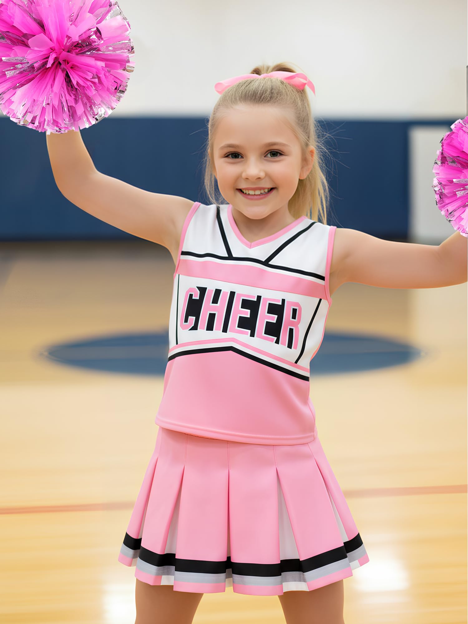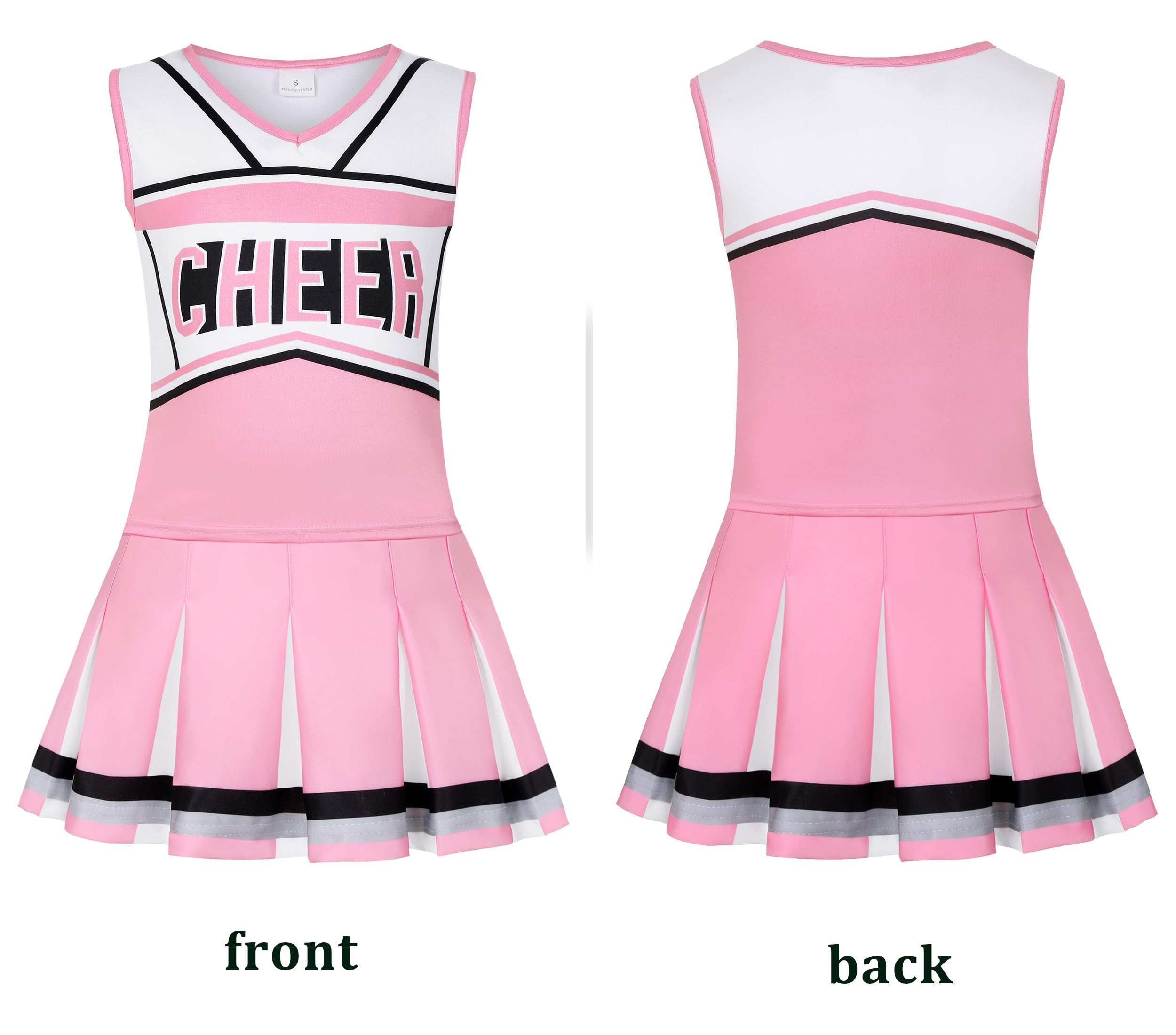 Perfect for any occasion: Whether it's school sports events, themed parties, or dressing up at home, this cheerleader outfit for girls is versatile and suitable for any setting. Slip into this adorable uniform and let your little girl experience the joy of being a cheerleader.