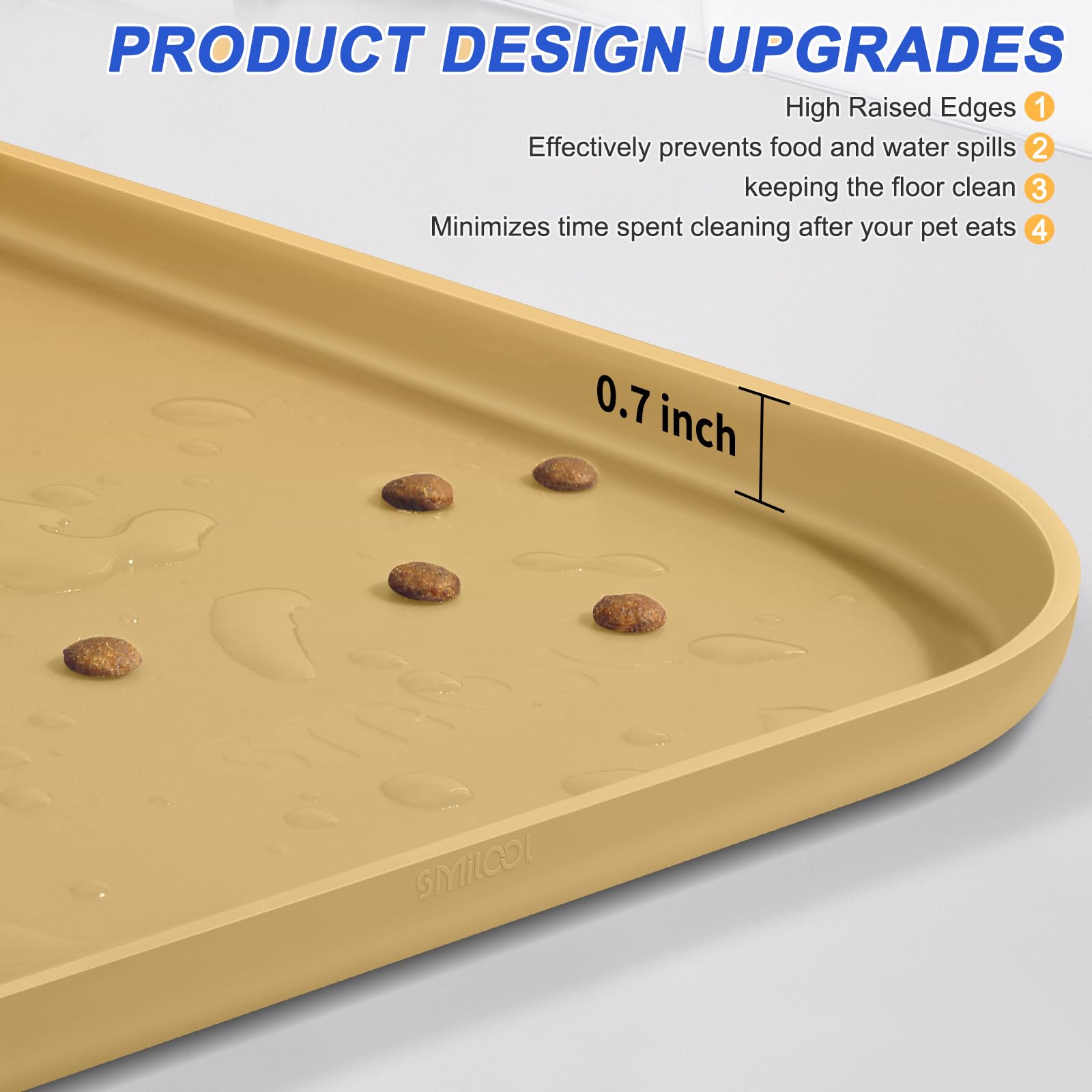Reinforced Raised Edges - The edges of the bpa free rimmed silicon dog dish trays for floor are 3 mm thick and have a 0.7 inch high raised lips, thicker and higher than similar products. This better contains food and water inside the mat, preventing messy spills during meals that can dirty your floors or lead to your pet eating contaminated food off the ground, risking their health. Not the same as absorbent pet feeding matts.