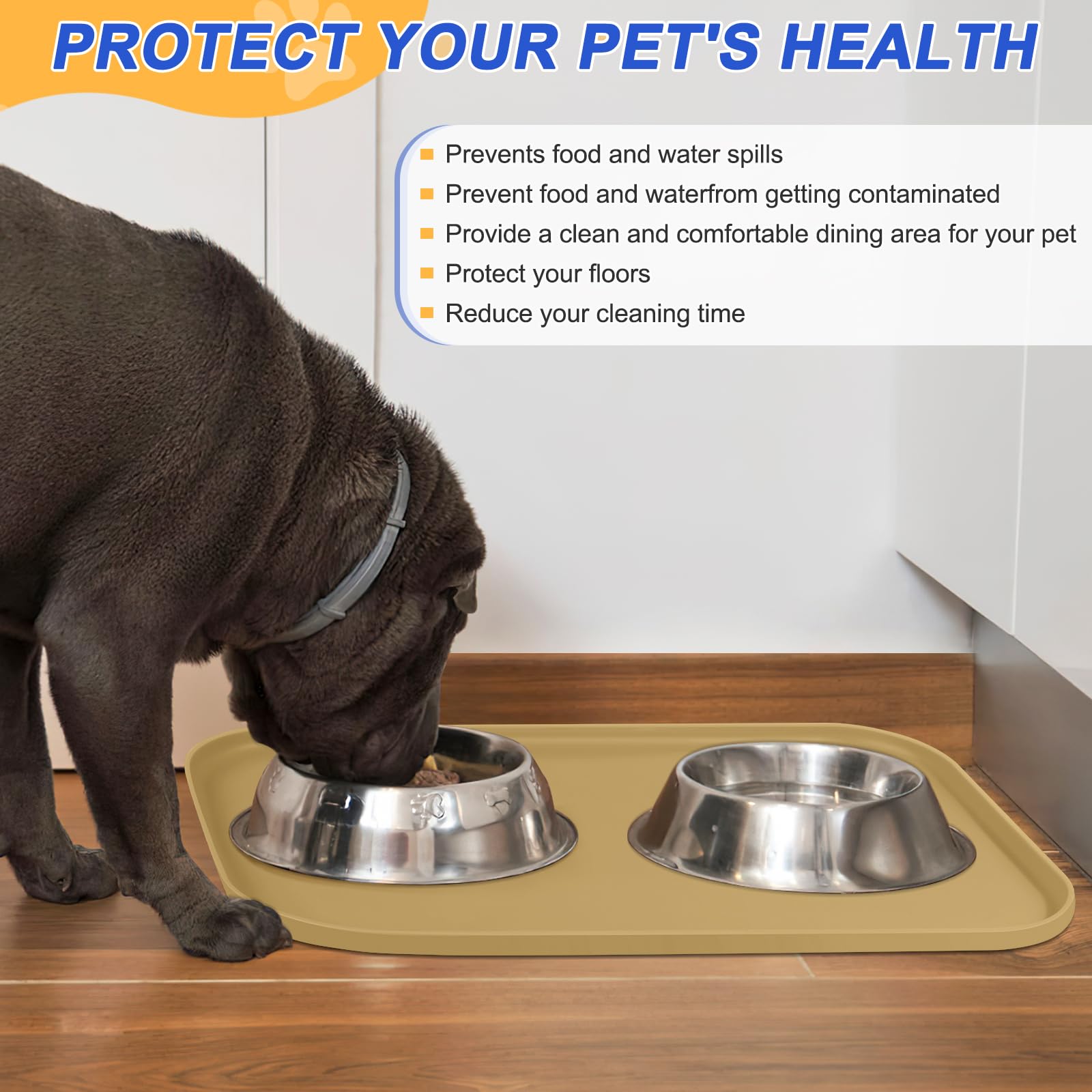 Slip-resistant to Keep Bowls in Place - Our 100% water proof dog water matt for sloppy drinkers has excellent anti-slip properties to prevent silicone pad for dog bowls from sliding around while your dog is eating, keeping food and water off the floor.