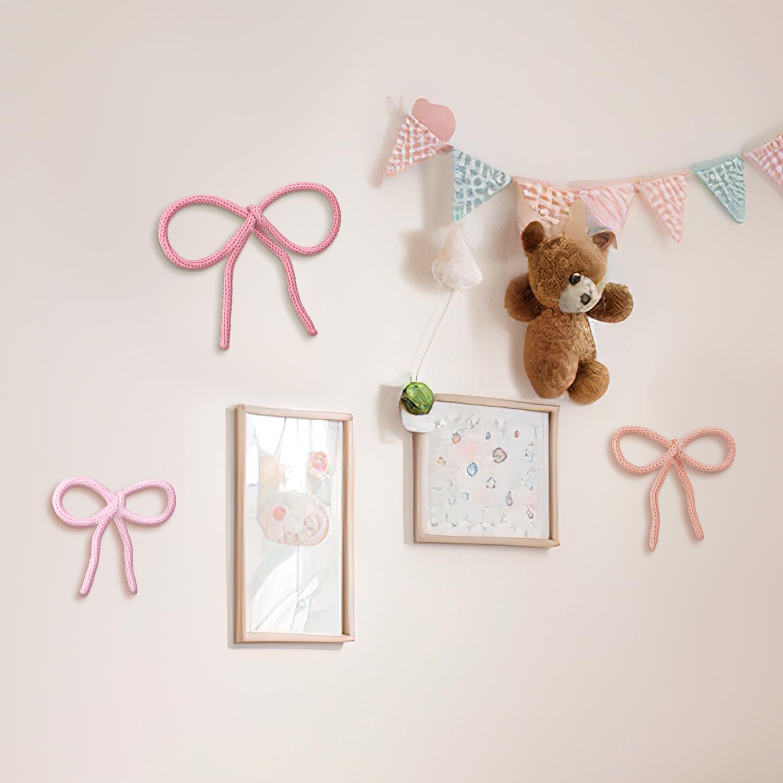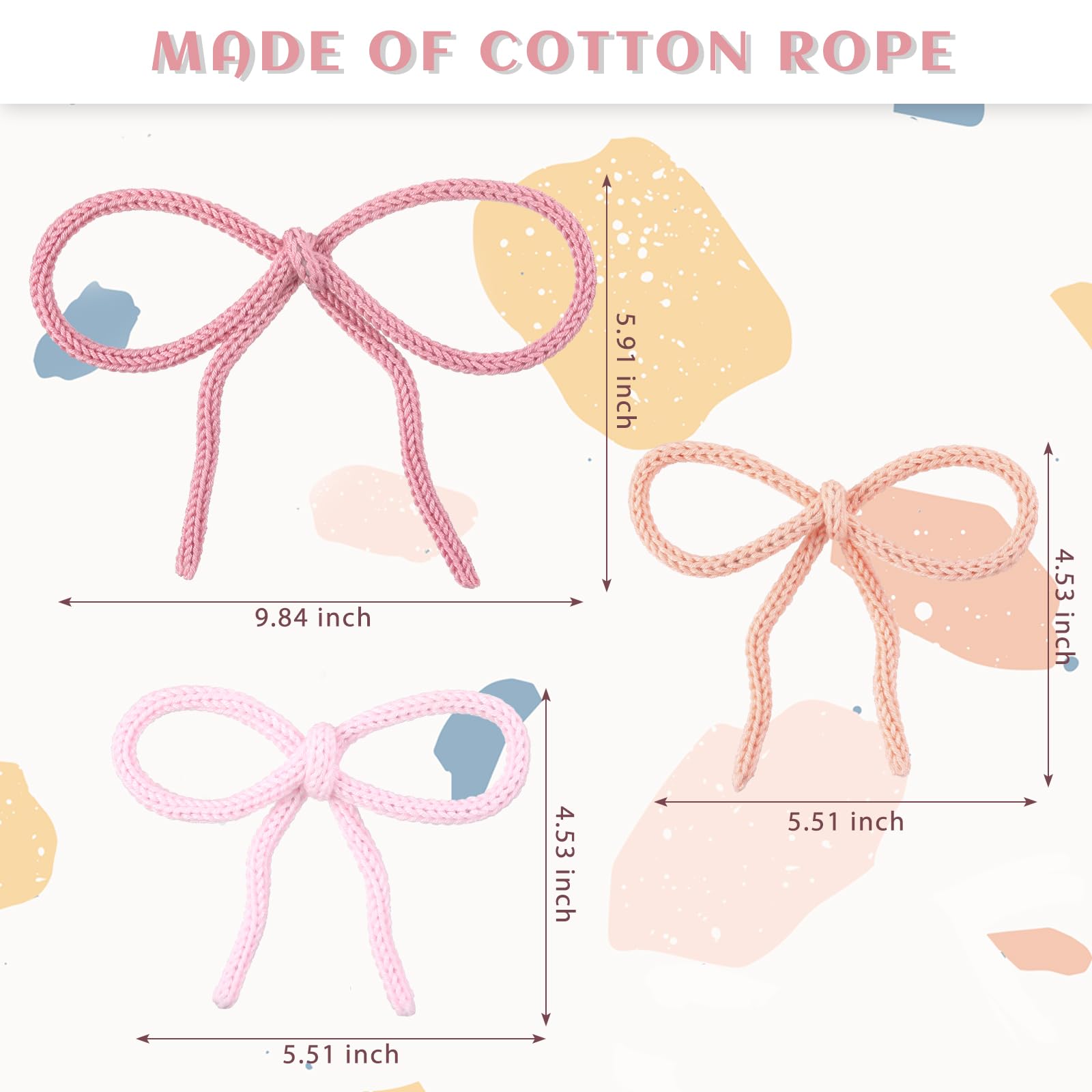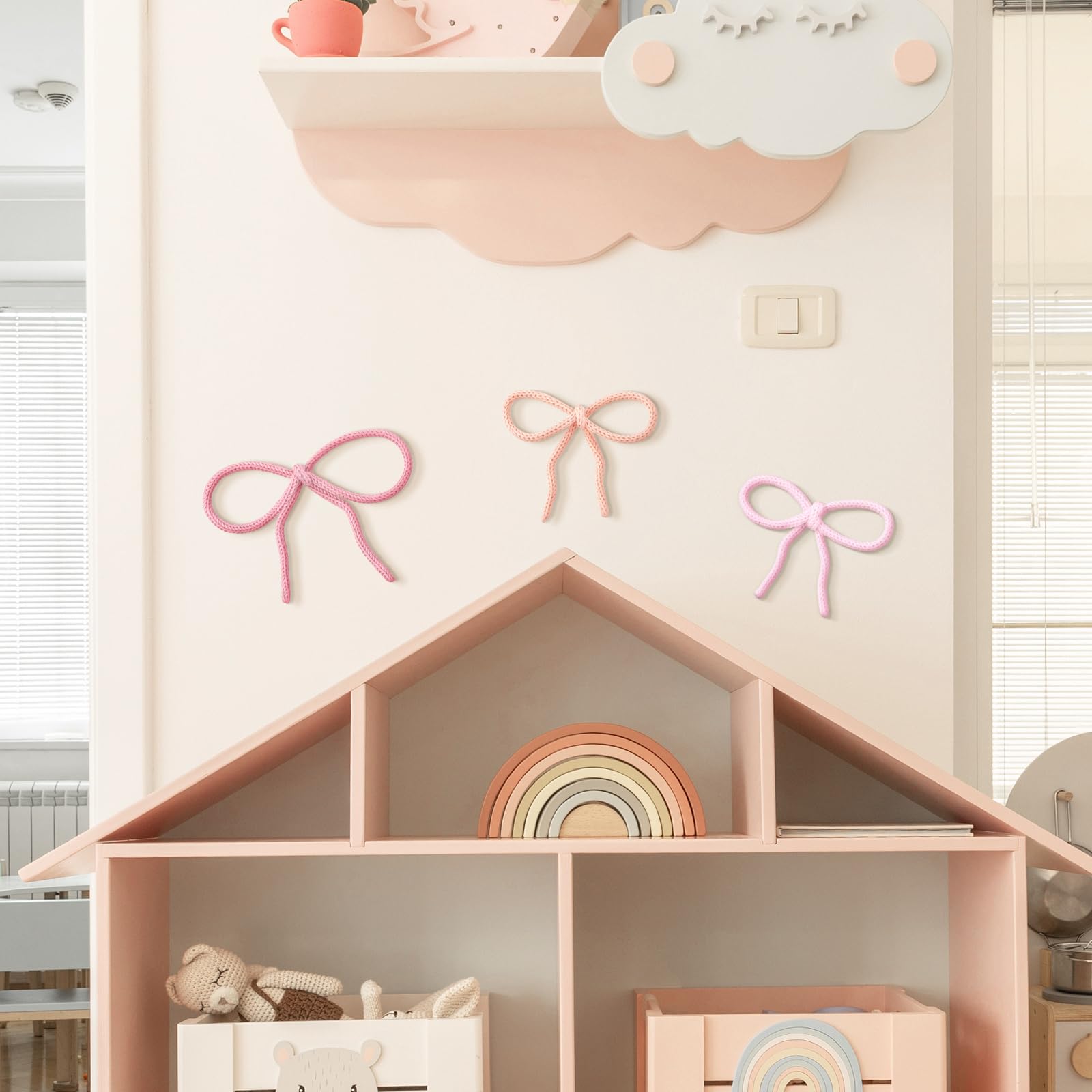 Charming Design and Versatile Decor: add a touch of style with this set of 3 pink woven macrame bows; Featuring coquettish and preppy styles, they're adorable for enhancing the decor of a girl's room, dormitory, nursery, or other spaces like bedrooms and living rooms