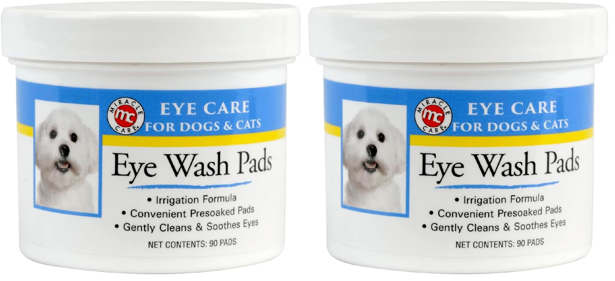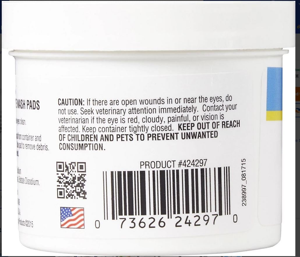 Includes one 90 count tub of Miracle Care Eye Wash Pads for Dogs and Cats