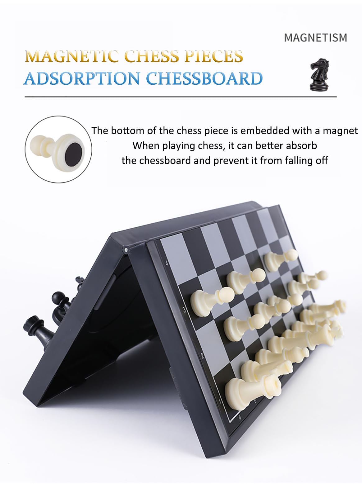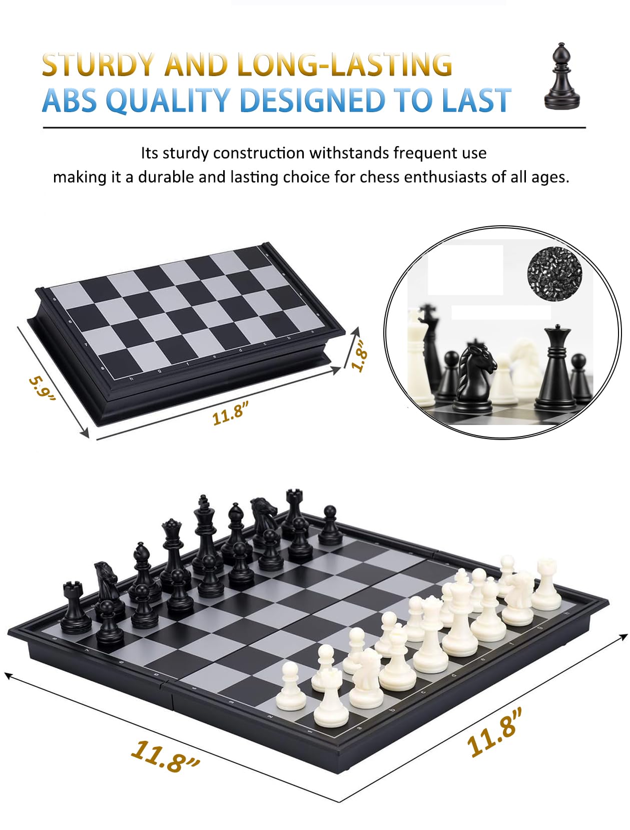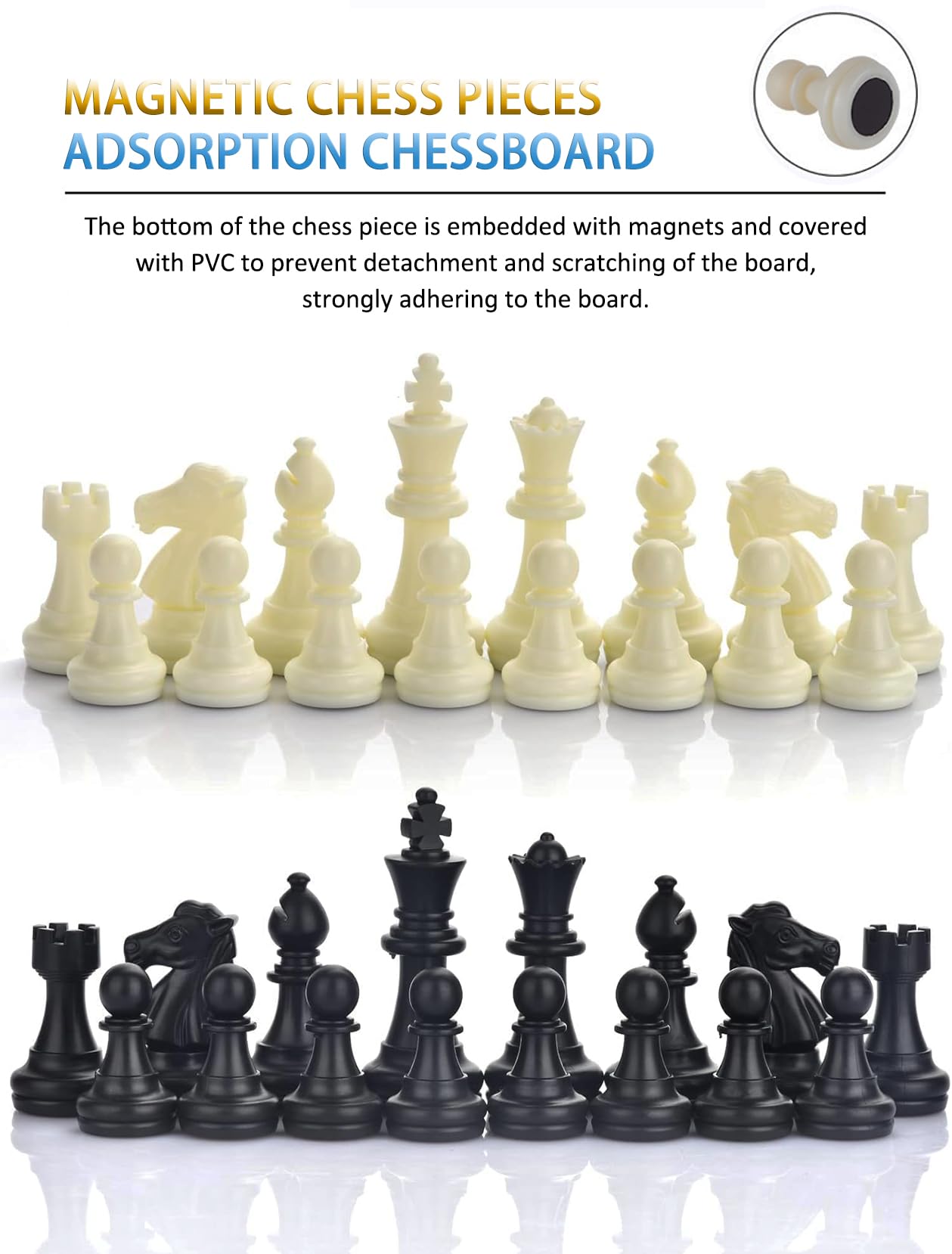 【PREMIUM ABS CHESS SET BUILT TO LAST】 - Crafted with rugged, scratch-resistant ABS plastic, this magnetic chess set survives years of play. Spill-proof and crush-resistant, it’s the ultimate travel chess set for frequent adventurers. Adults appreciate the sleek finish, while teens love its indestructible fun.