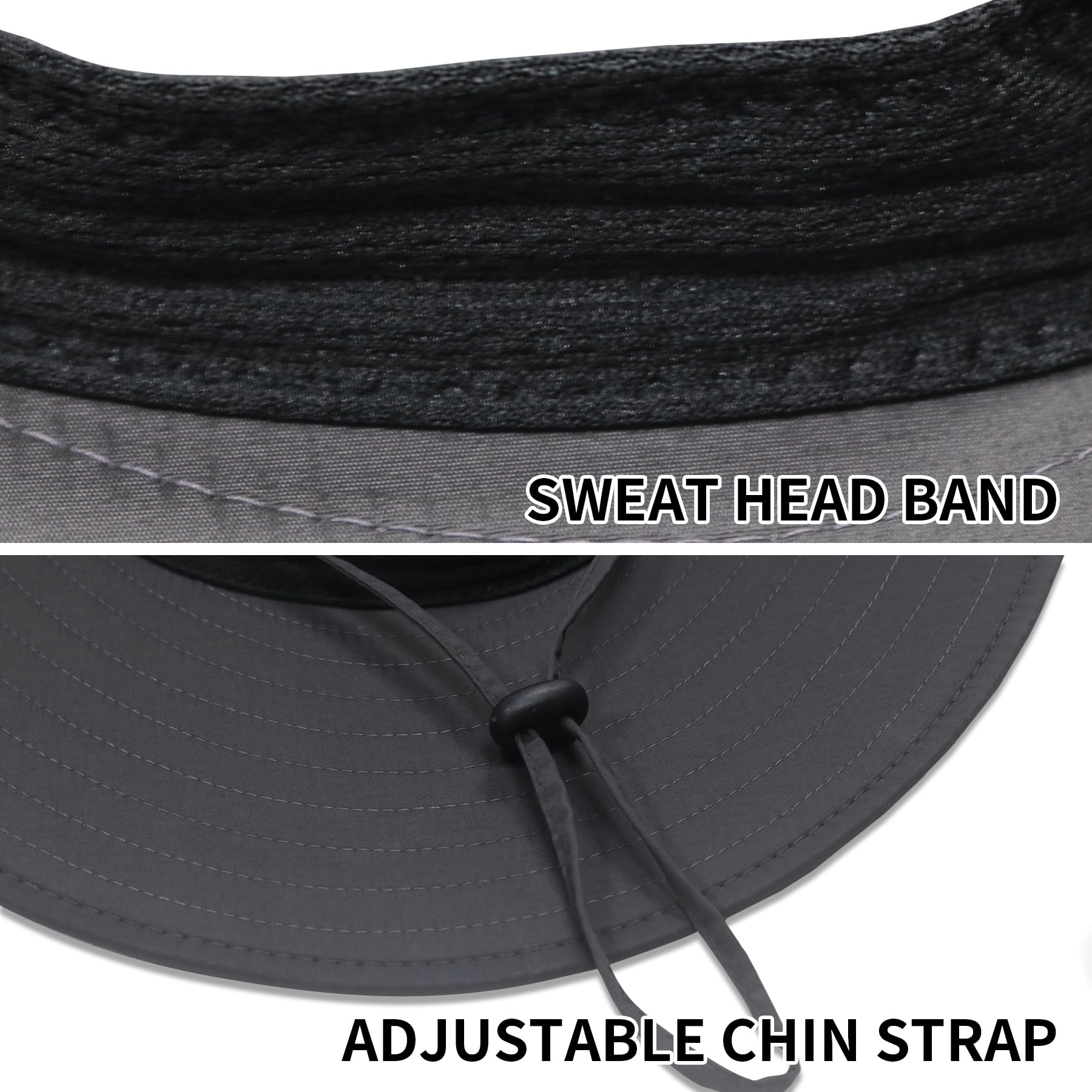COMFORTABLE & BREATHABLE: Breathable mesh sides ensure effective airflow. The sweatband inside the sun fishing hat and the breathable lining can efficiently absorb sweat for your comfort even if you wear the sun hat all day