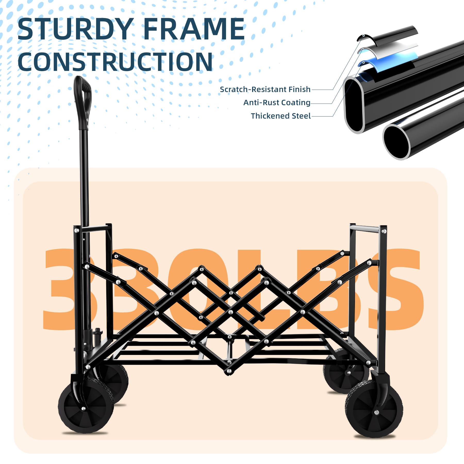 330LBS LOAD CAPACITY - Built with a sturdy alloy steel frame, this wagon can effortlessly hold up to 330 lbs. The double - layer 600D oxford fabric is tear - resistant, waterproof, and wear - resistant, ensuring long - lasting performance and durability for carrying various items.