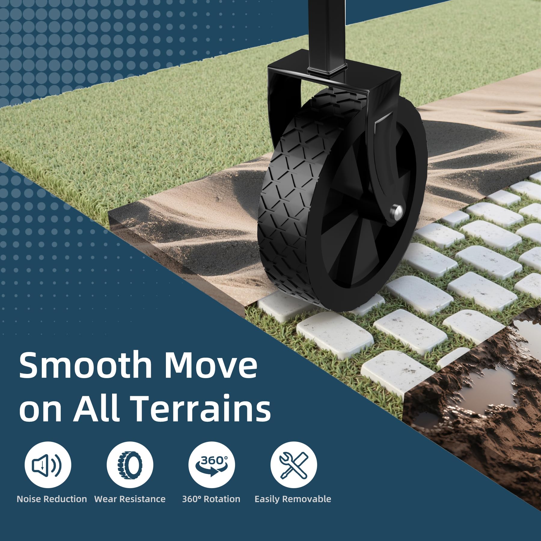 ALL - TERRAIN WHEELS - Equipped with two front 360° rotating wheels, this wagon can glide smoothly over various terrains like pavement, grass, and sand. The wheels are also detachable, facilitating storage and maintenance.