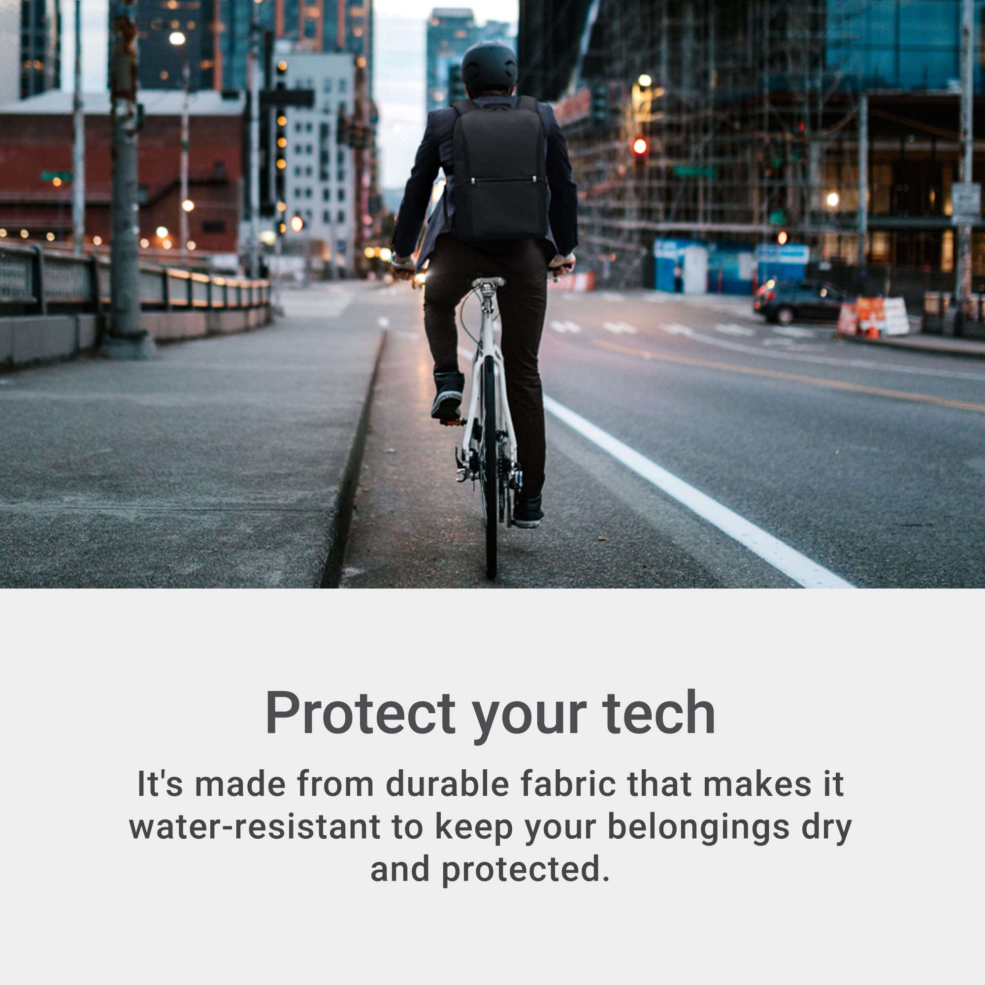 Protection on-the-go: The backpack provides protection on-the-go with 360º foam cushioning surrounding the laptop sleeve. It's made from durable fabric that makes it water-resistant to keep your belongings dry and protected.