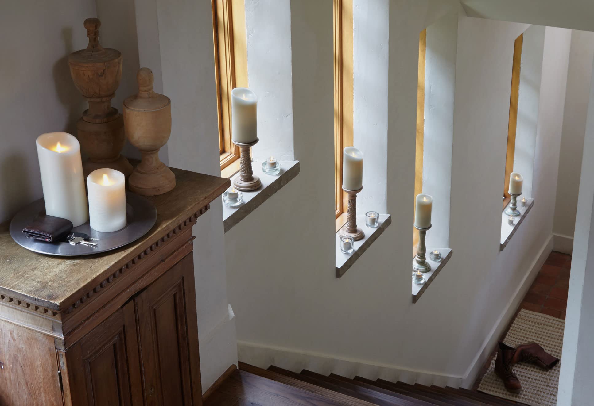 Luminara Flameless LED Moving Flame Pillar Candles are made with 100% pure paraffin wax, hand poured and carefully designed to look like traditional candles. They are safer to use than traditional candles, since no actual combustion or wax consumption happens. That means no soot or chemicals are released into the air, making them perfect for use indoors. They're perfect for households with small curious children and rambunctious pets.