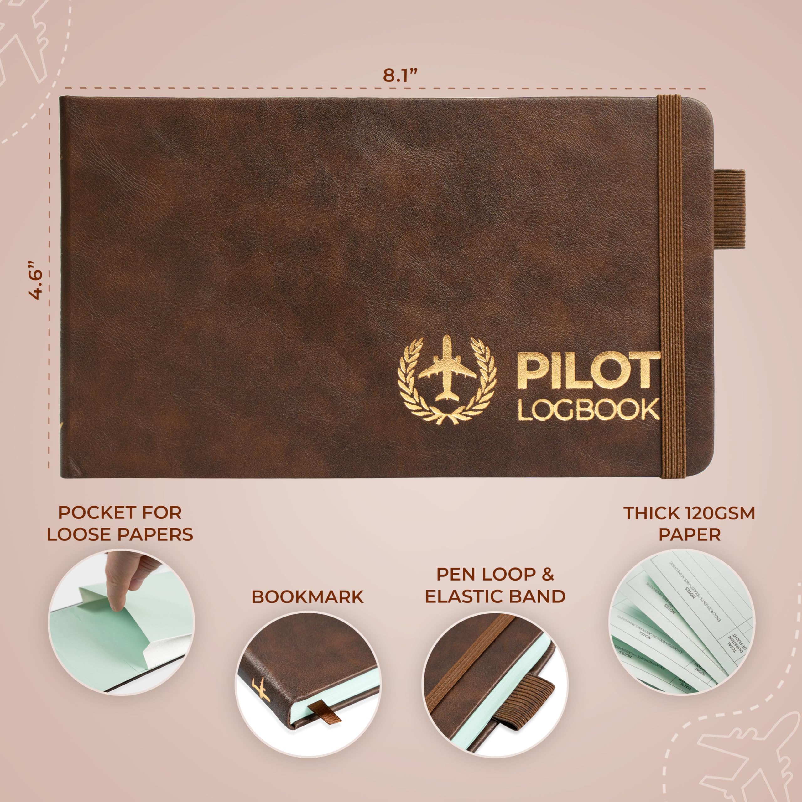 PRACTICAL AND EASY TO USE – Lay-flat binding ensures comfortable writing, while the elastic band keeps your logbook securely closed when not in use. The pilot log book hardcover measures 8.1x 4.6”, and has a ribbon bookmark and a pocket for notes.