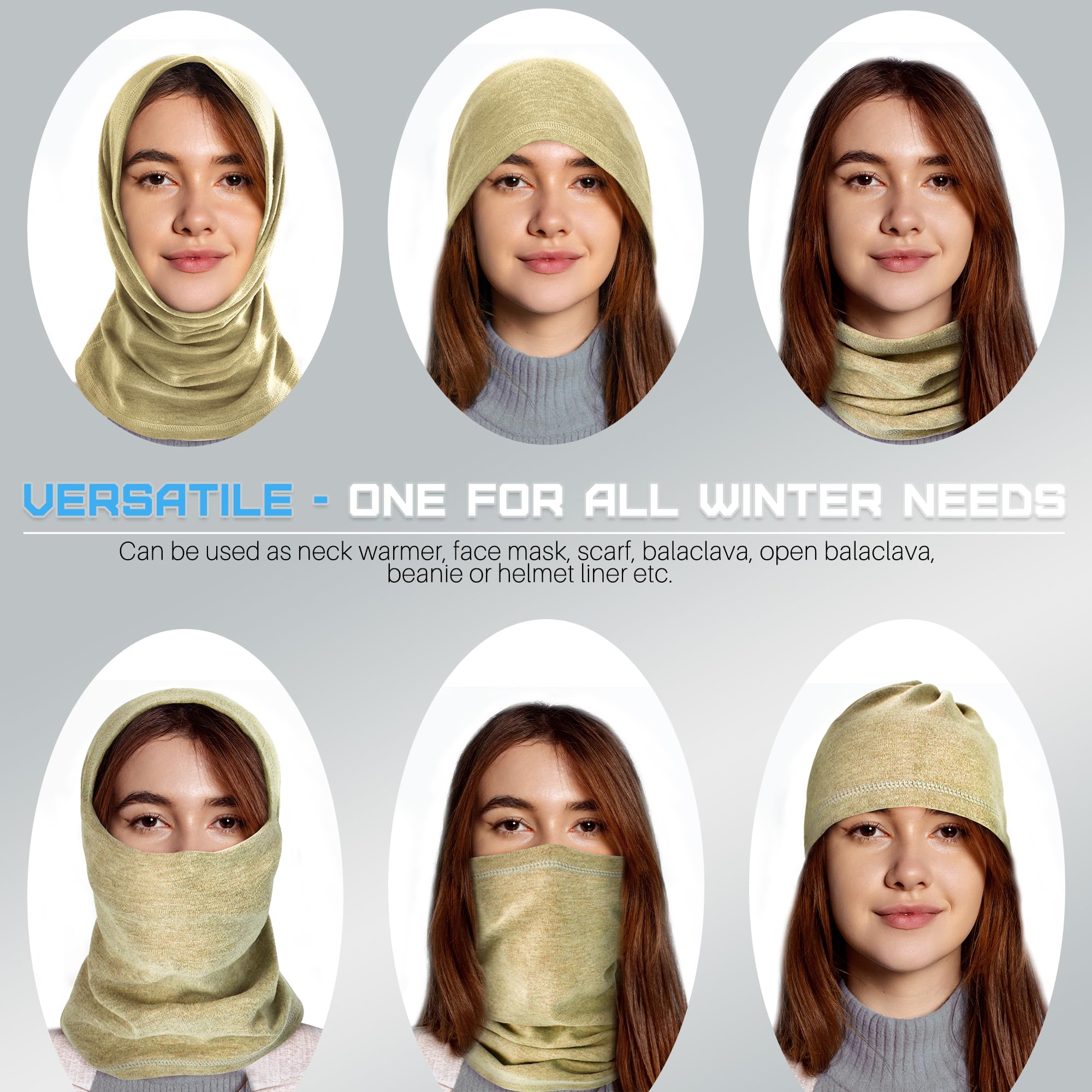 Multifunctional Face Cover: Can be worn as a winter neck warmer, scarf, face cover, half balaclava, beanie, pirate hat or used as a skiing helmet liner.