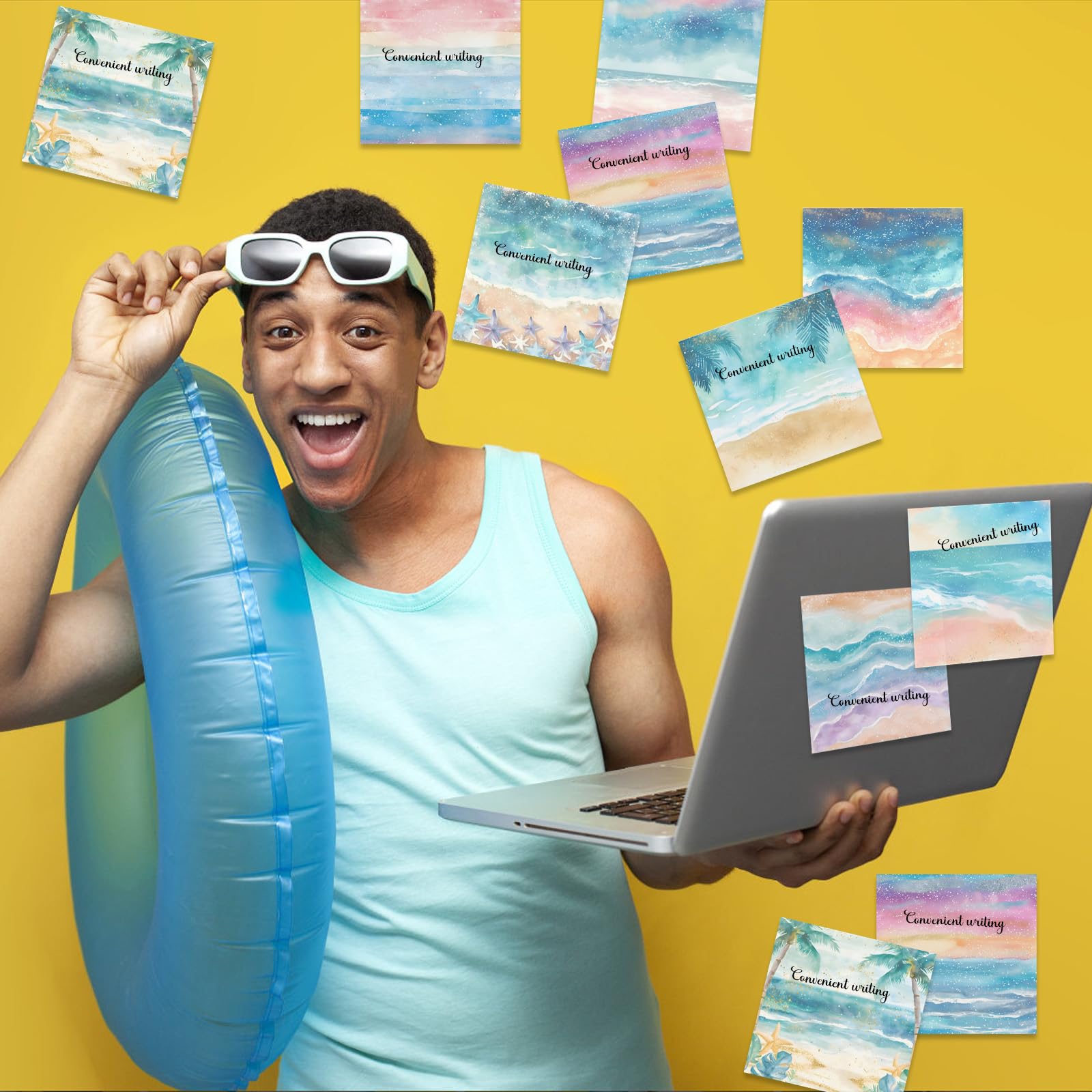 Quality Materials: These summer beach note pads are made of self-adhesive paper, non-toxic, odorless, strong adhesive, easy to tear and stick, will not leave adhesive traces on the items, not easy to fall off.