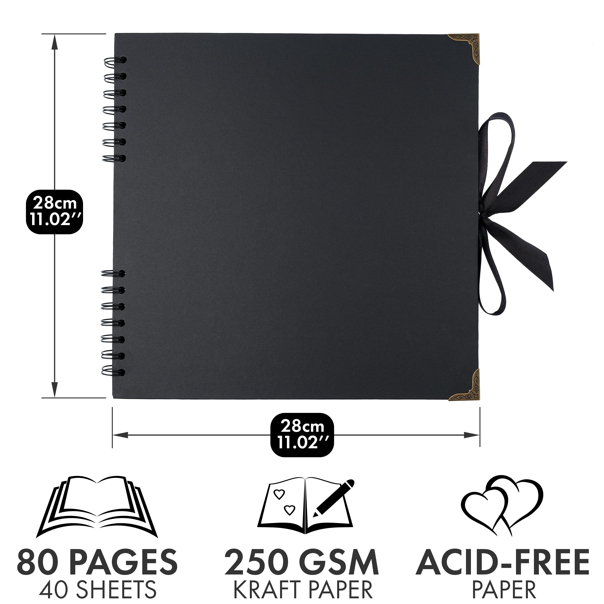 Our 11 x 11 inches kraft scrap book is durable and suitable for long term storage for you and your loved ones beautiful memories. It has 40 sheets, 80 pages of 250gsm high quality thick Kraft paper, designed with ribbon closure, hard cover and corner protectors