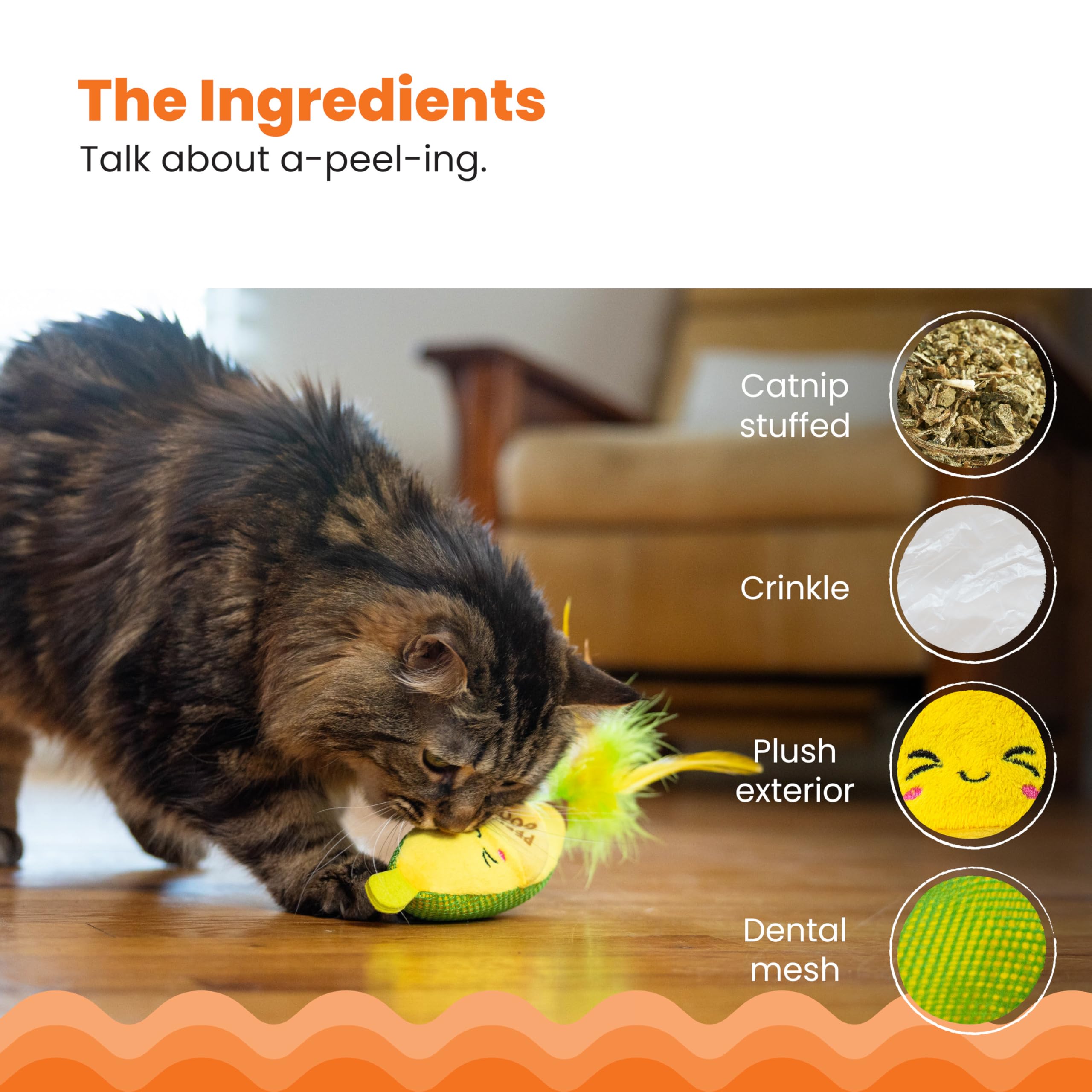 100% CATNIP-STUFFED KICKER TOY FOR ENERGETIC PLAY: packed with premium catnip, this banana-shaped cat toy is perfect for wrestling, bunny kicking, and engaging your cat’s natural instincts for active, stimulating play