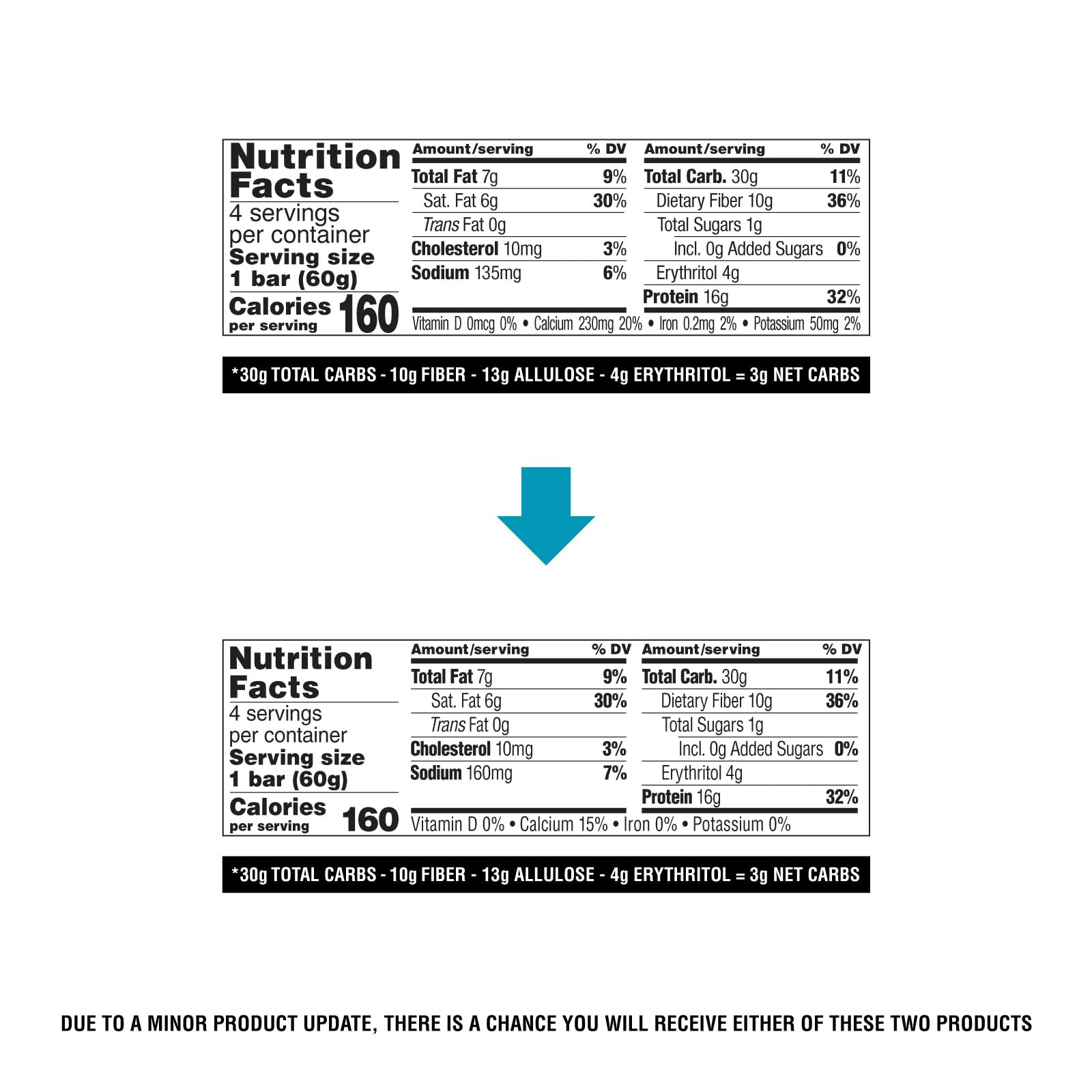 PROTEIN FORWARD. 16g of protein, 1g of sugar, and 3g of net carbs* per serving. Support your fitness goals and enjoy a crispy, chewy protein bar with the irresistibly sweet flavor of blueberry cobbler.