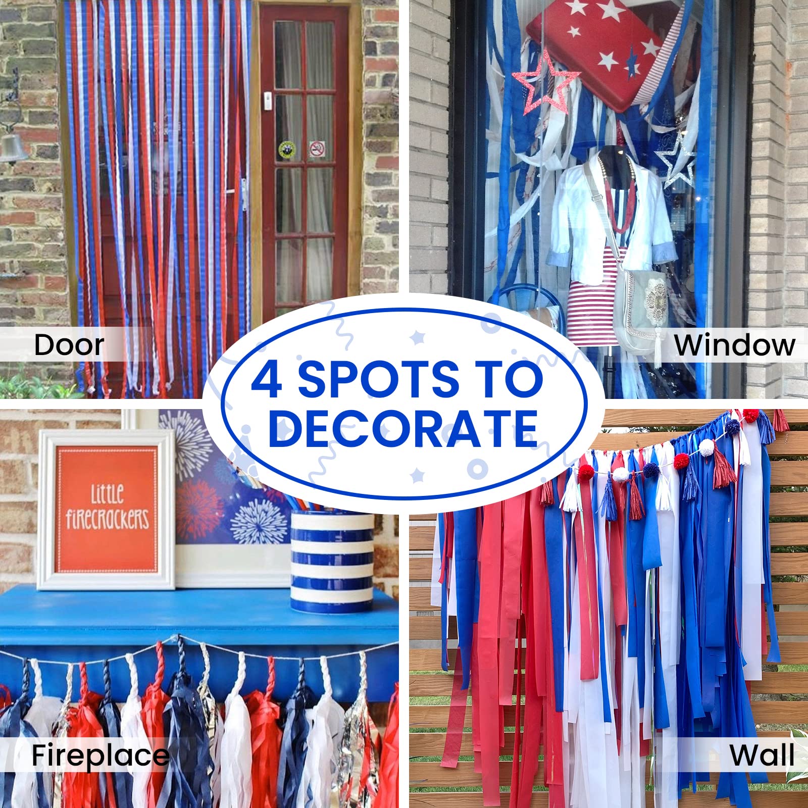 Easy to Decorate: These red white and blue crepe paper streamers are easy to untie.You can twist paper streamers together into spirals, Use the crepe paper roll for backdrop, match different colors to give your patriotic party a customized look