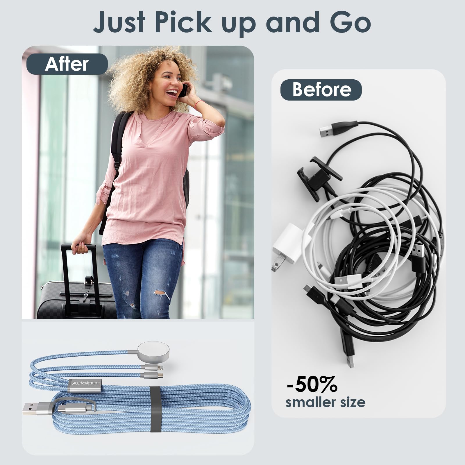 【Thoughtful Gifts & Travel Gadget 】This is a great gift for birthdays, Thanksgiving and Christmas.An essential accessory for AppL-e enthusiasts.It is the perfect present for anyone who owns both an App-le Watch and an Phone, providing convenience and style in one package.Charging the whole family in the car requires such a cable.