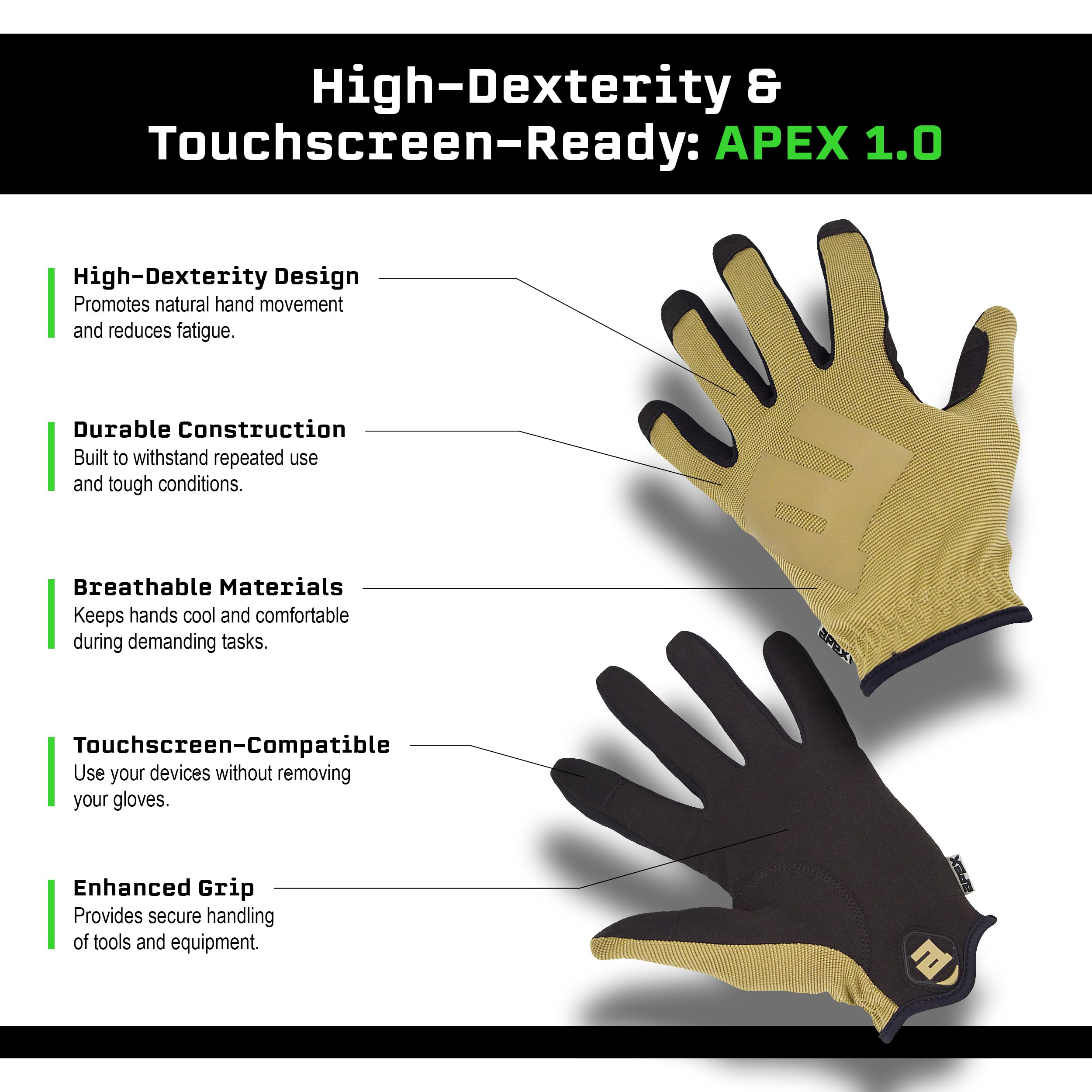 ENHANCED DEXTERITY AND PROTECTION: Experience the BAREHAND FEEL with the APEX 1.0 High Dexterity Gloves, offering unparalleled precision and hand protection for versatile use in sports and demanding work environments