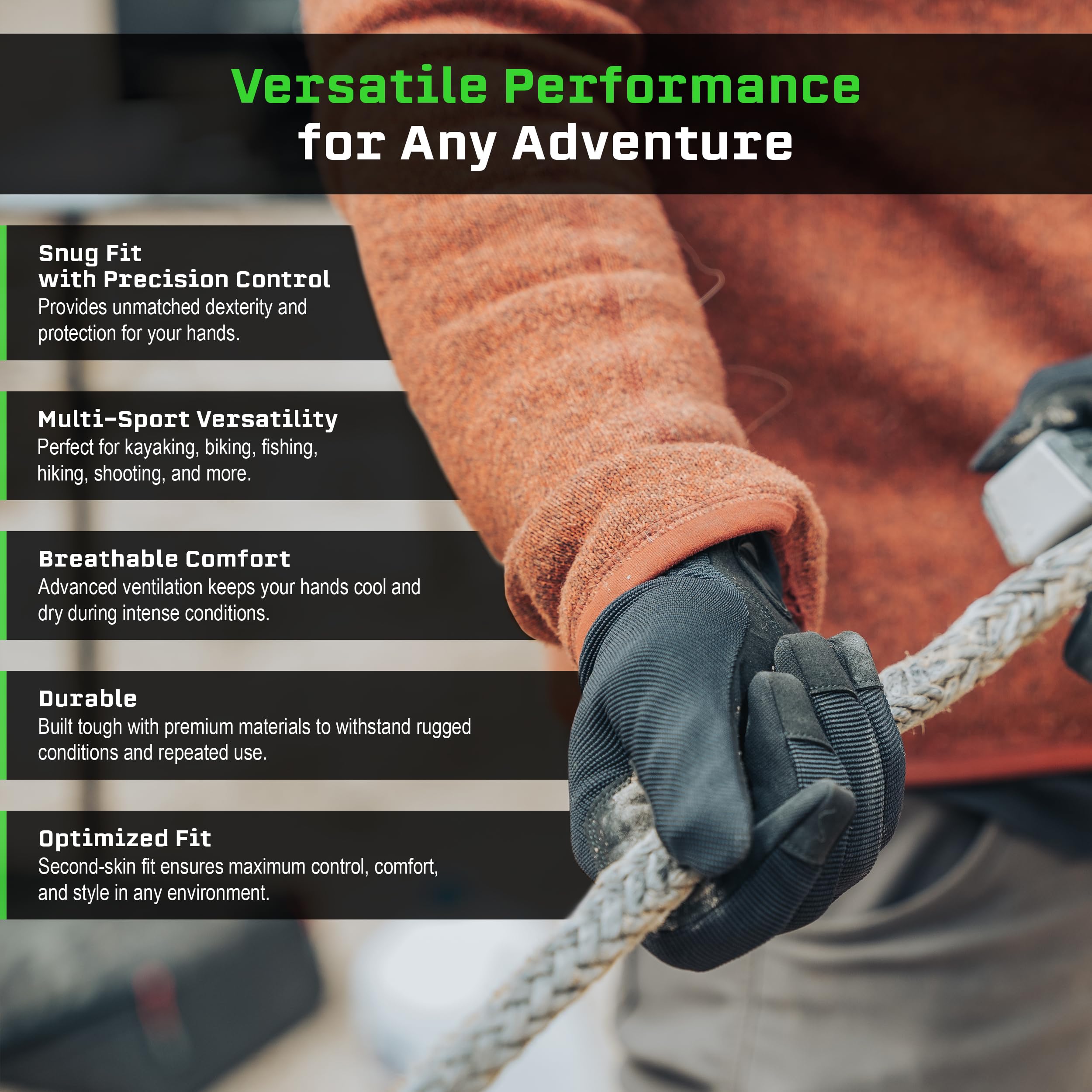 MULTI-PURPOSE VERSATILITY: APEX multi purpose gloves deliver superior grip and full hand protection; suitable as tactical gloves, shooting gloves, hunting gloves, fishing gloves, hiking gloves, and multi sport gloves for kayaking, cycling, and more