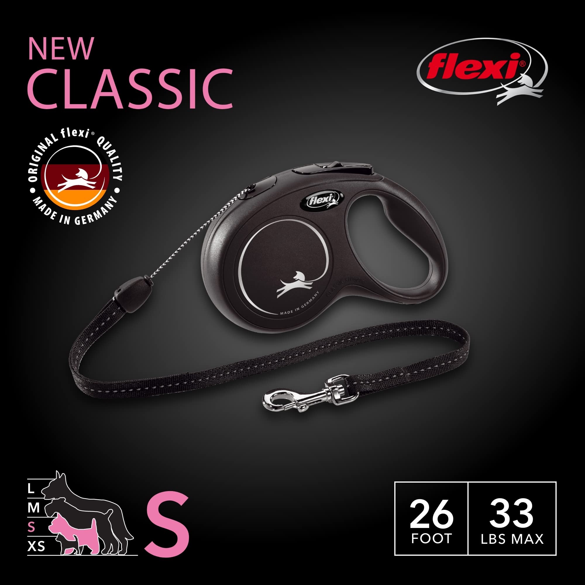 HIGH-STRENGTH CORD FOR RELIABLE CONTROL: The flexi New Classic Cord Retractable Dog Leash features a high-strength cord that delivers reliable control and durability. This cord is meticulously engineered to handle the daily demands of active dogs, providing exceptional strength without compromising flexibility. Whether you're navigating busy sidewalks or exploring open trails, the robust cord ensures your pet remains securely connected.