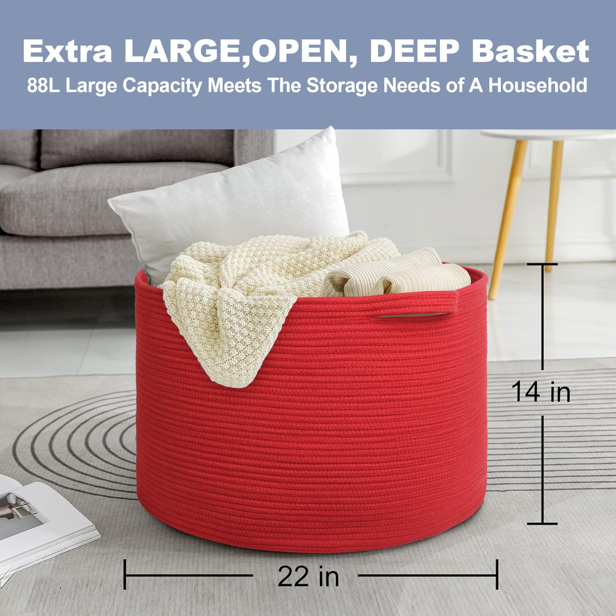 MULTIPLE USE AESTHETIC HOME DECOR BINS: The huge open size basket can be used for storing decorative bed pillows in the corner of the bedroom, or in the living room for extra couch blankets and pillows. Perfect-size storage basket for nursery or child's room to hold kids toys or stuffed animals. Add a red bathroom decor for towel basket storage. A perfect red room decor aesthetic