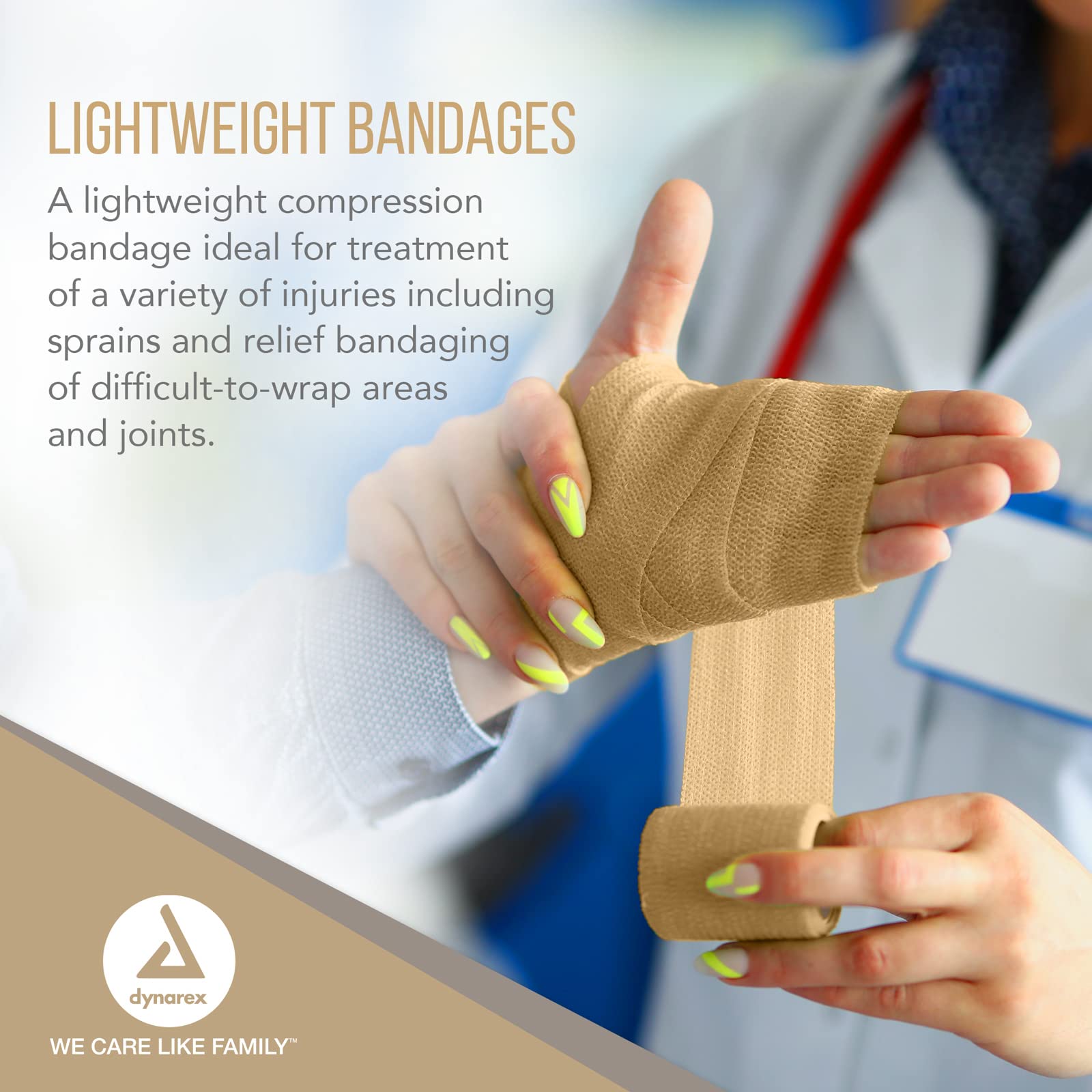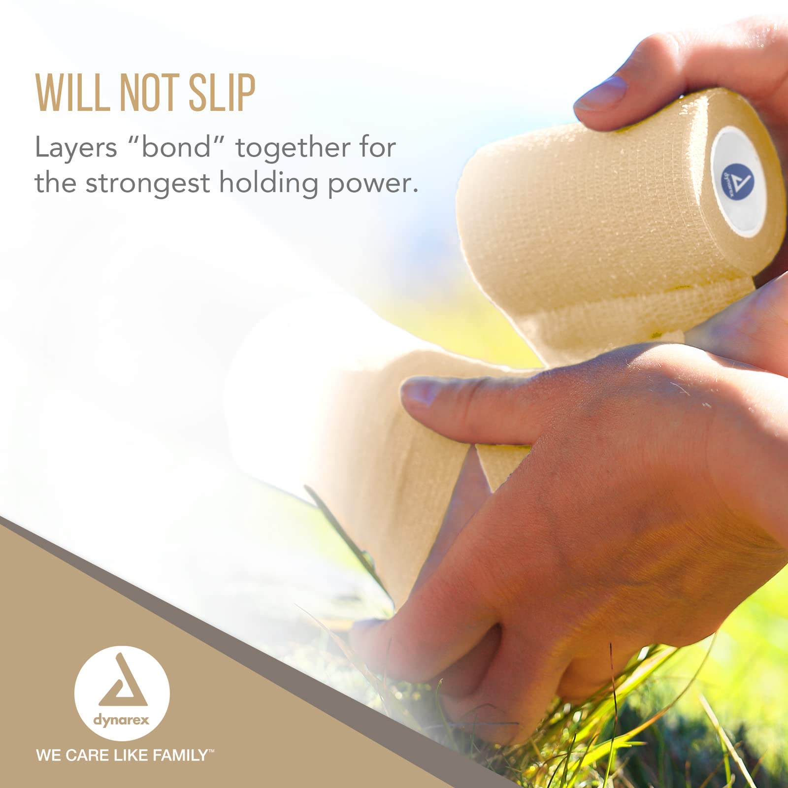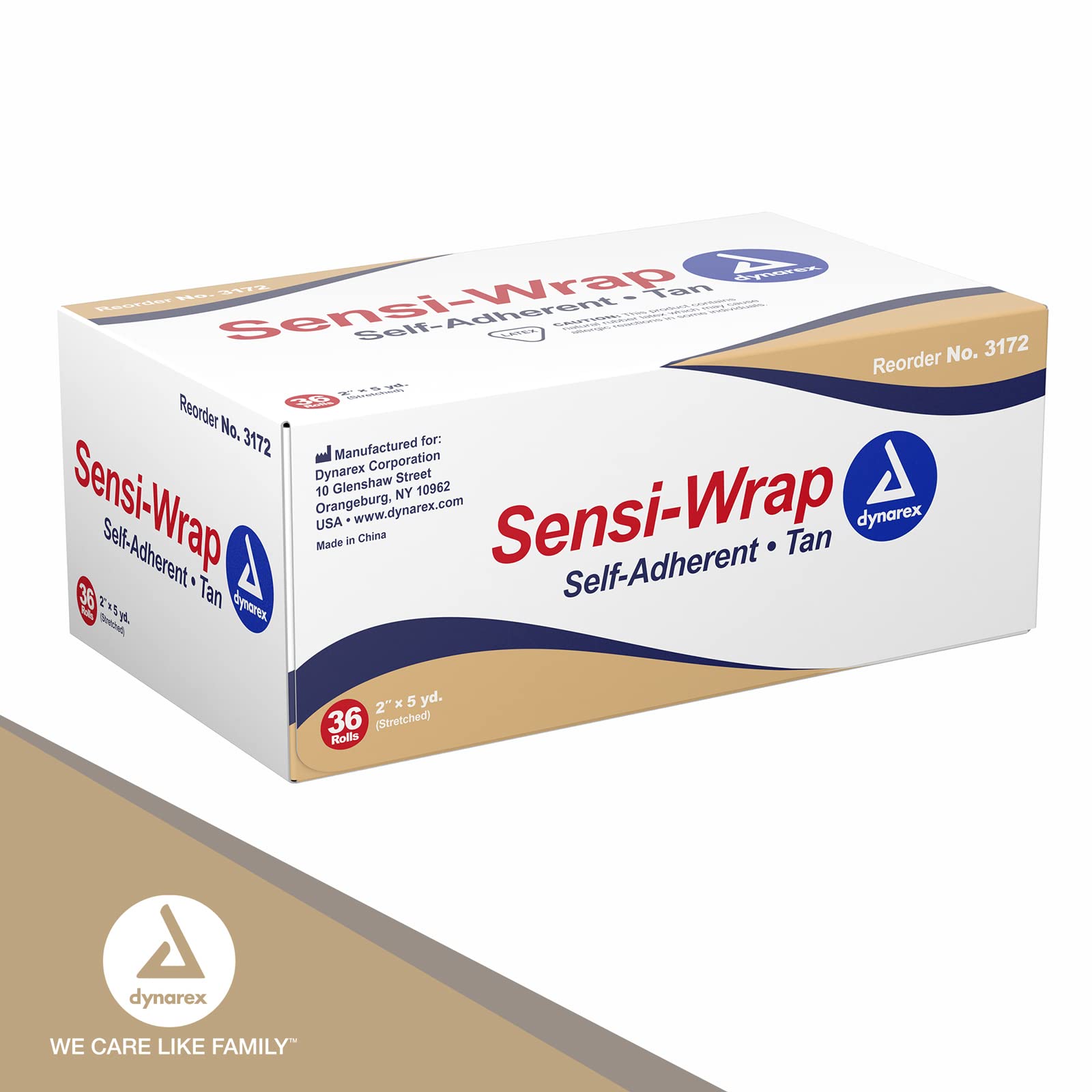2" x 5 yard sensi wrap self adherent bandage rolls provide a lightweight compression bandage which sticks to itself, not to other materials and skin. Easily torn without the use of scissors. Will not slip. Tan bandage rolls are individually poly bagged. Latex content.