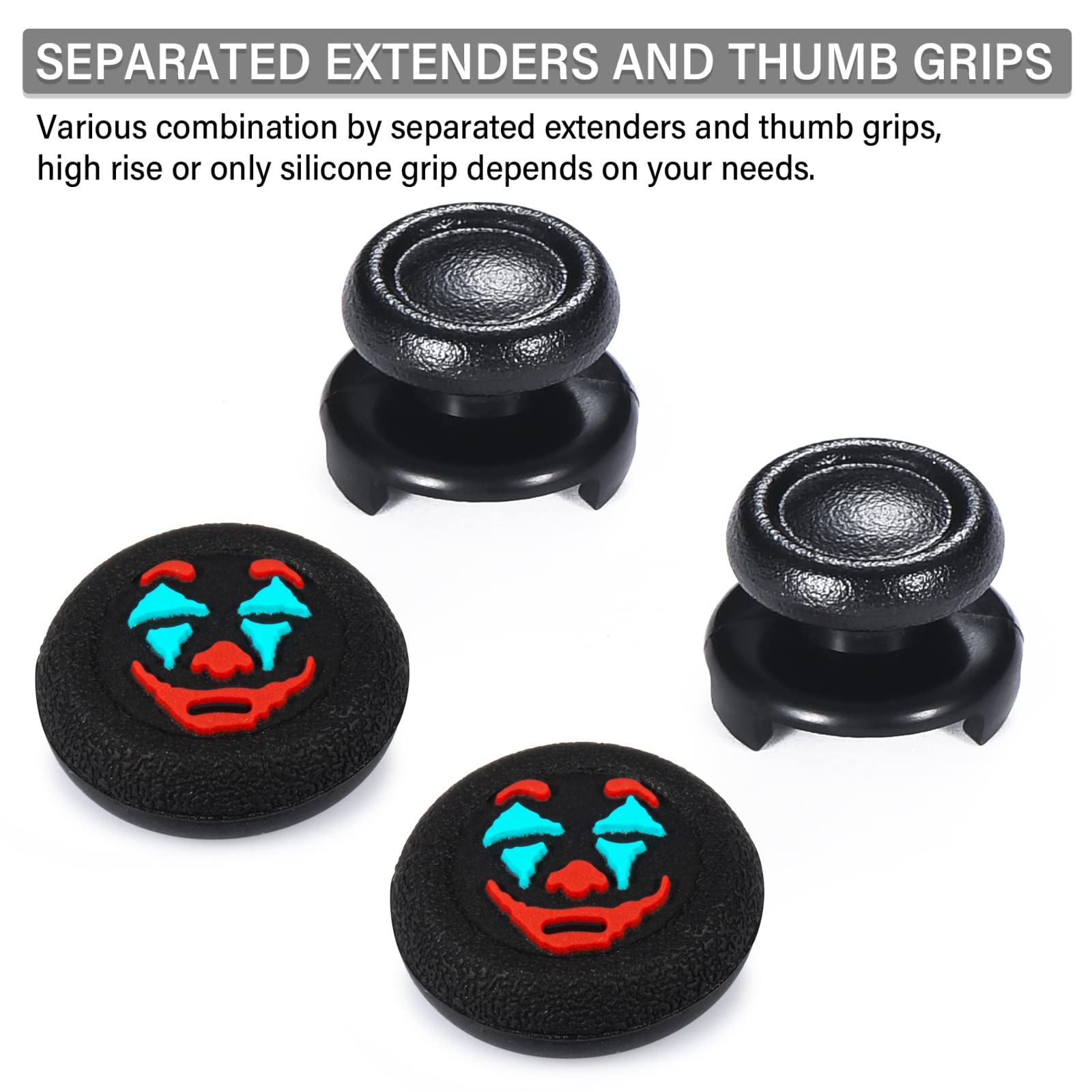 Different Height Options - Install extender & grips sets adds 10 mm height to the stick, enhances precision in shooting, racing games. Install only silicone thumb grips, enjoy original height and ideal comfort and protection;