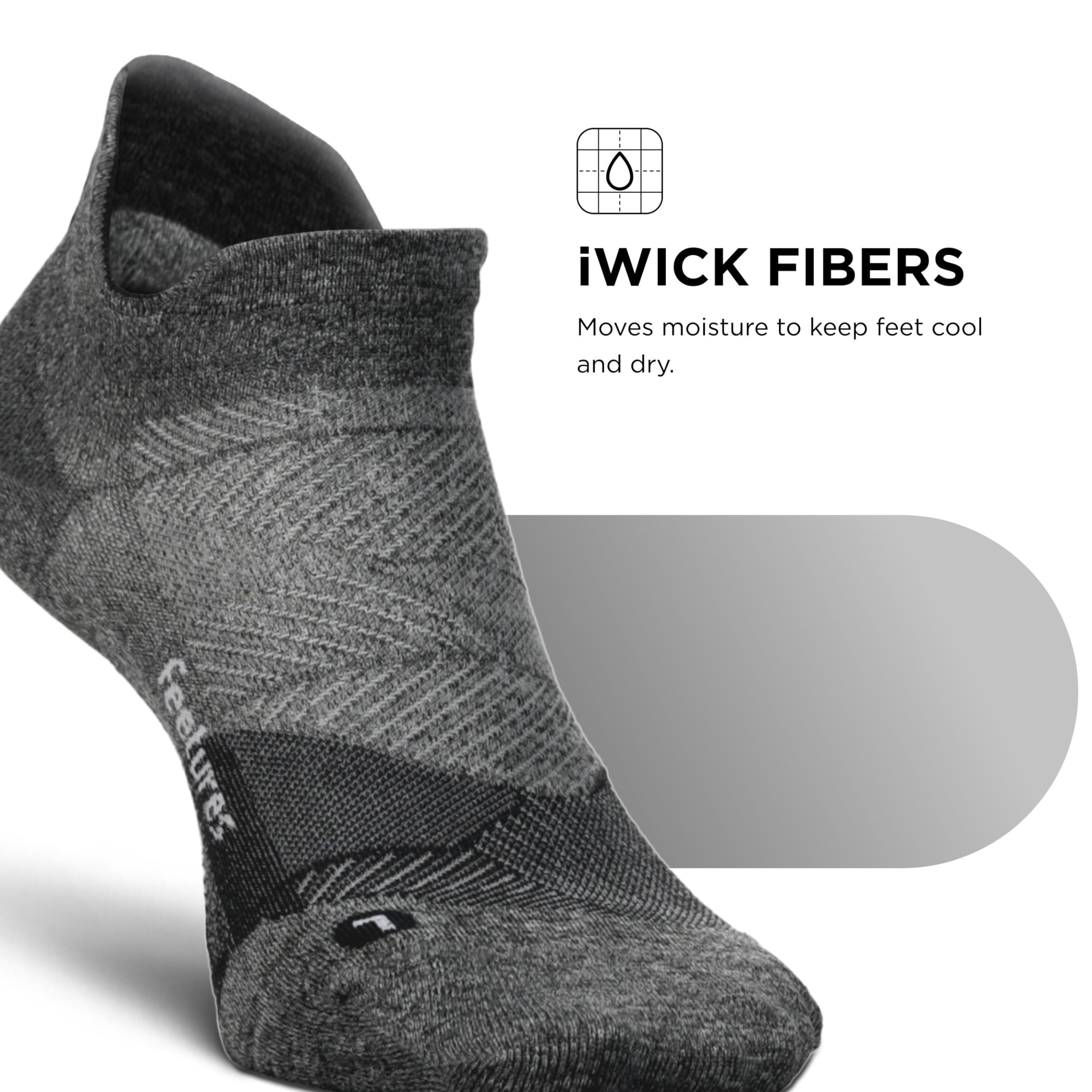 Breathable Socks for Men & Women: These athletic socks are made with iWICK fibers that wick moisture to keep feet cool and dry; mesh construction of these Feetures socks provide ventilation for added breathability; these running socks with seamless toe feature The Perfect Toe