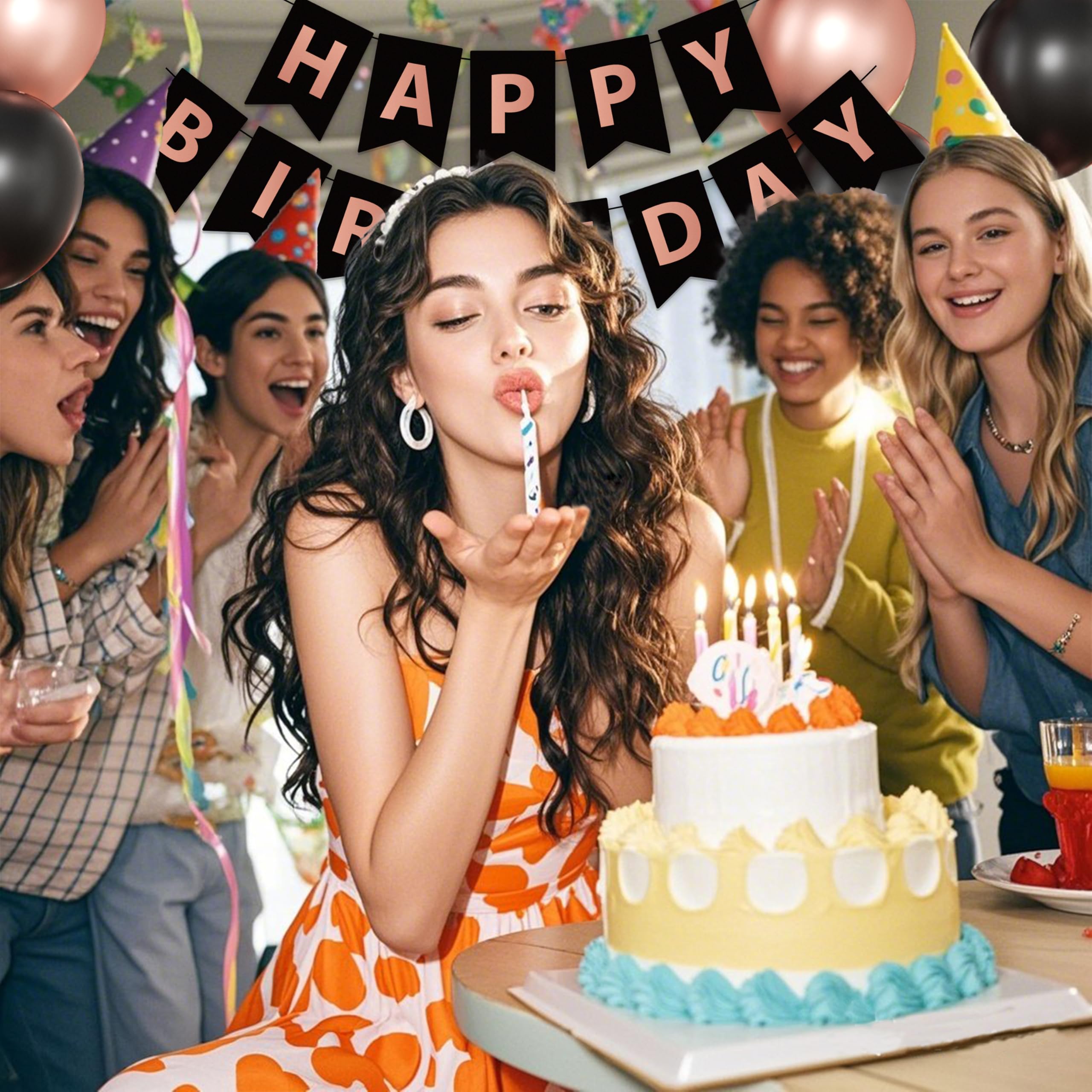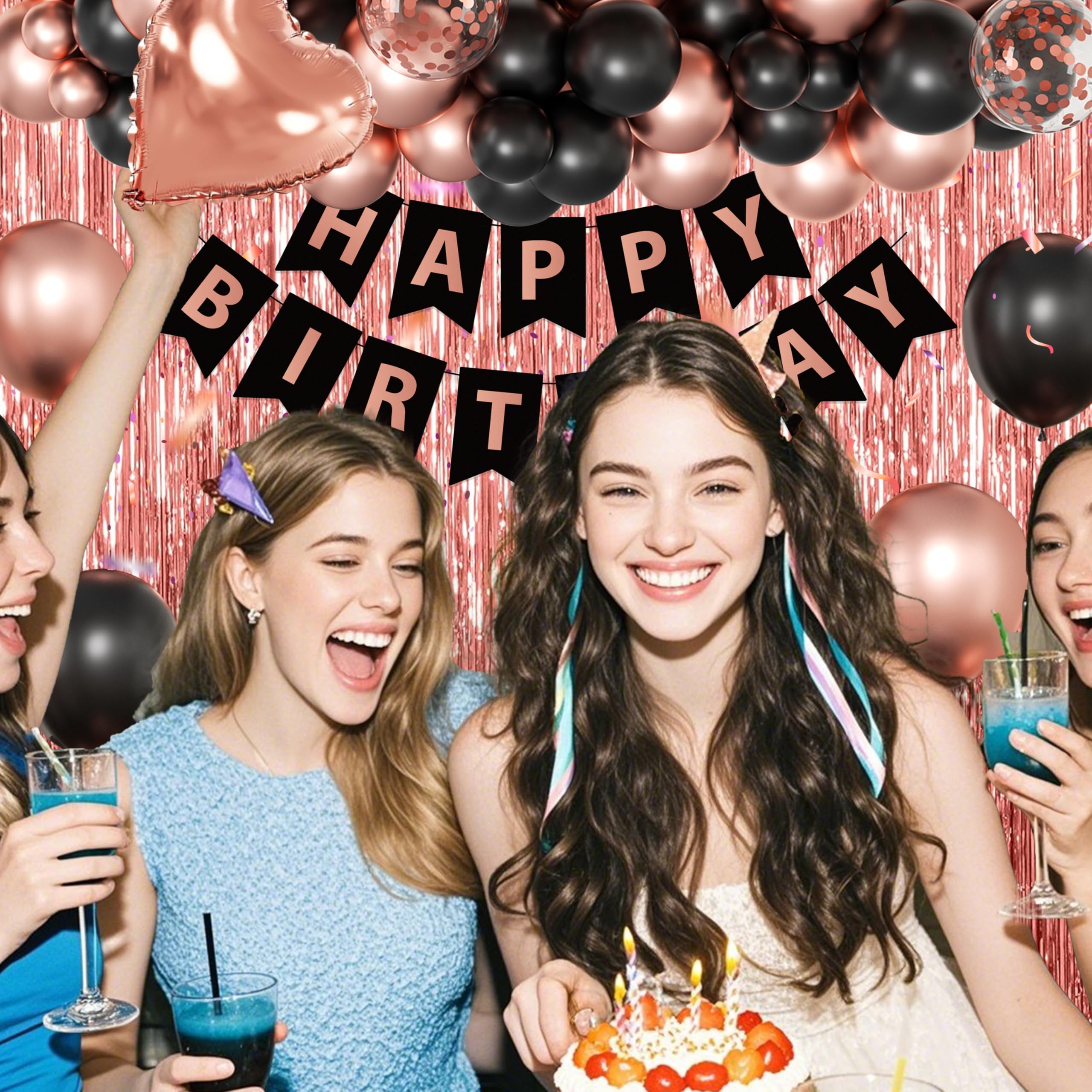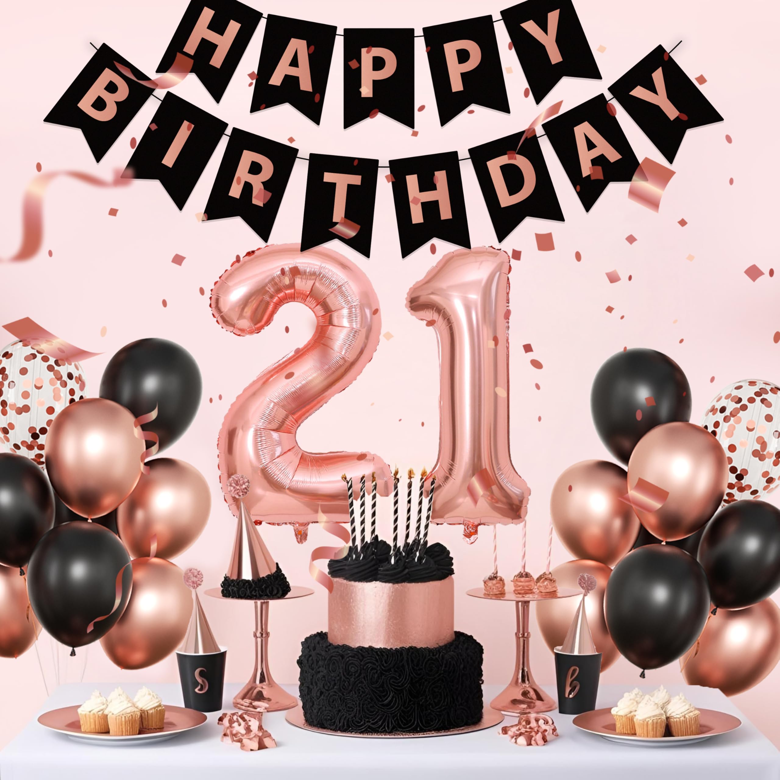 Elegant Color Scheme: Combines sophisticated rose - gold and classic black, ideal for an 21st birthday, adding a touch of luxury to the party.