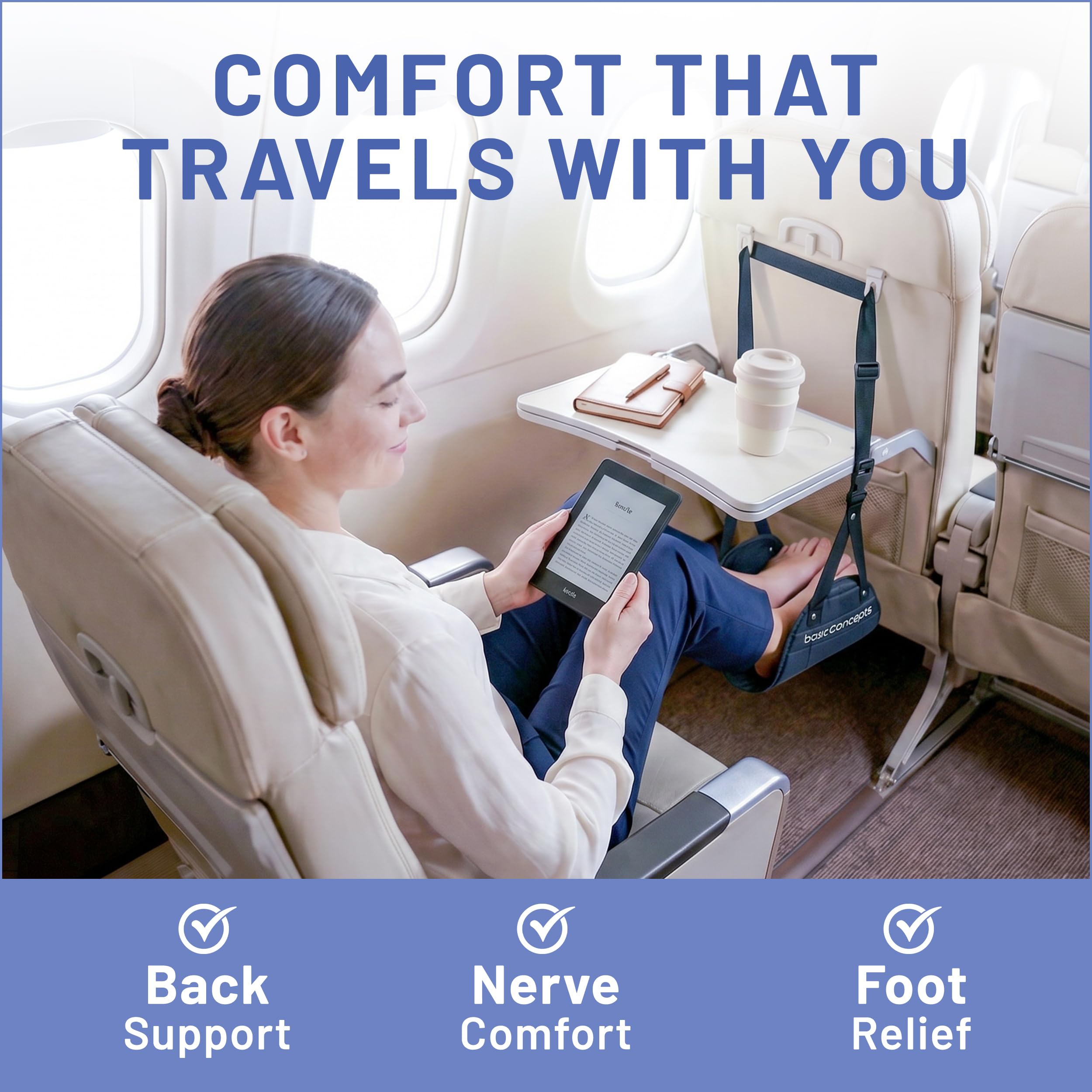 Travel Comfortably - Long flights can be uncomfortable for many reasons. We’re here to solve at least one of them. With our travel-sized airplane footrest, you can give your feet and lower-back the vacation they deserve. Who needs 1st Class anyways? With our travel foot rest, you can kick your feet up and relax wherever you go. Add a foot hammock to your list of travel essentials today.