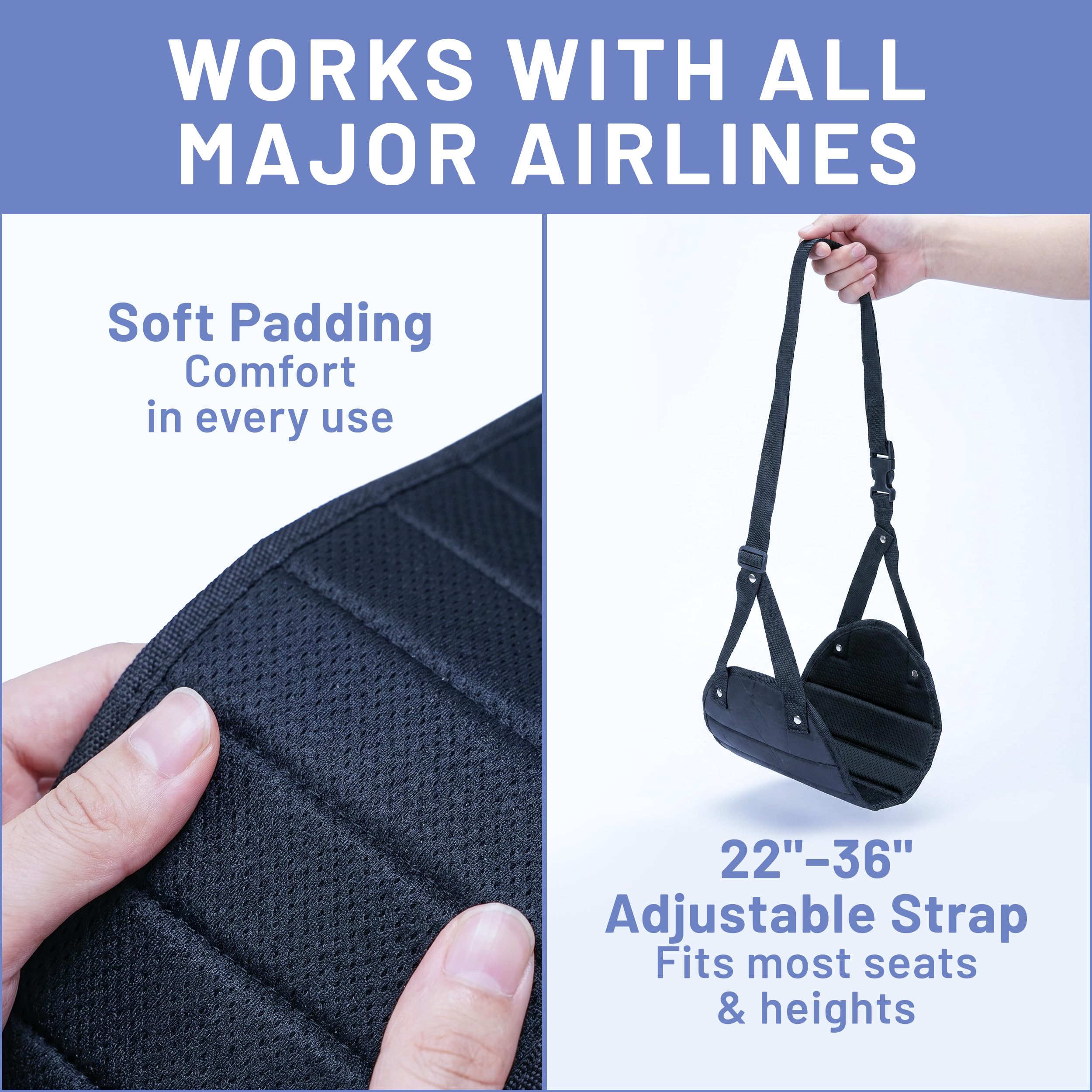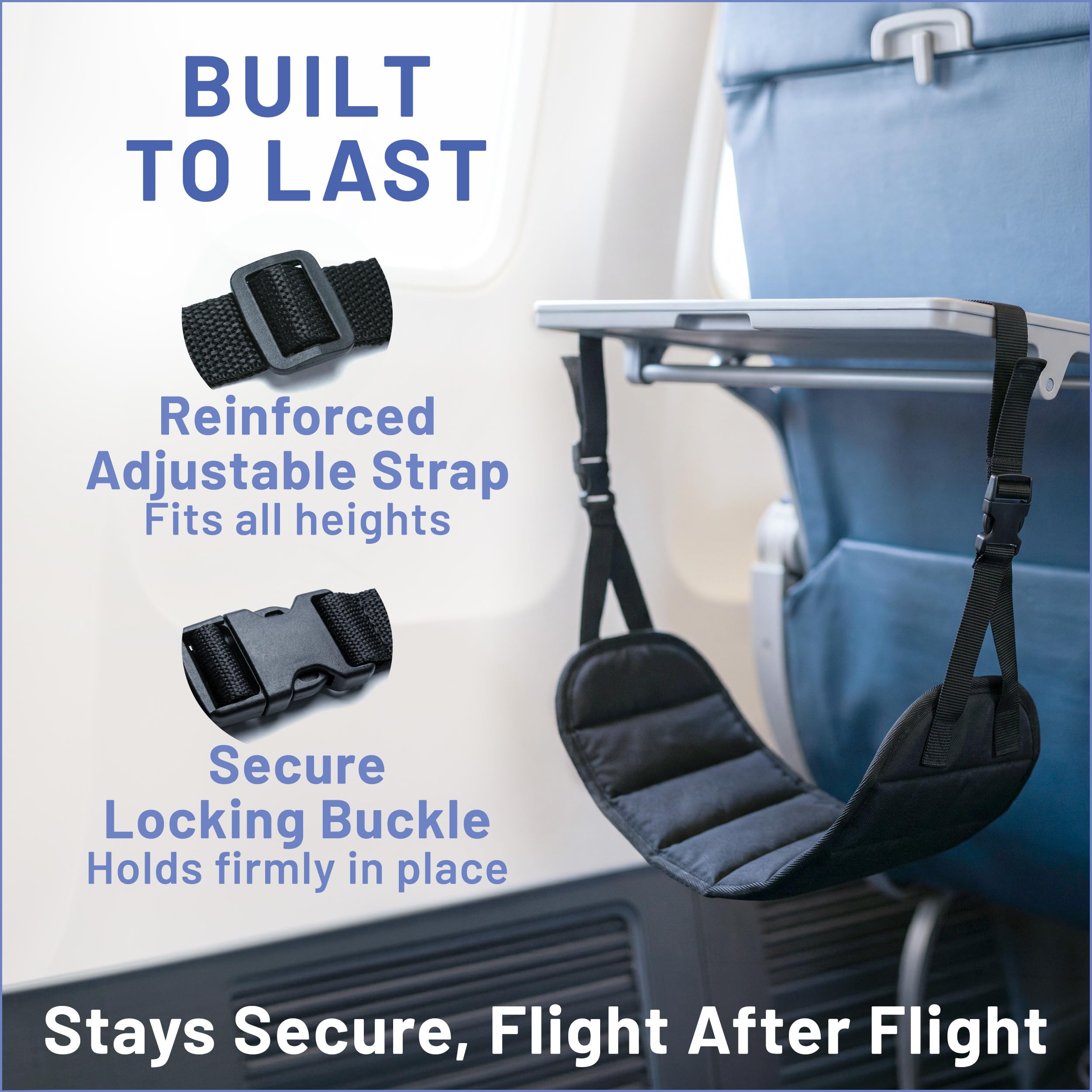 Office Footrest - Your new airplane foot rest is straightforward to use. It has an extra-long adjustable strap. Travelers of any height can find comfort with our foot rest for airplane travel. Simply wrap your plane foot rest around the seat tray in front of you, and adjust the strap to your desired length. Place your feet in your new comfy airplane foot hammock, relax, and settle in for a smooth flight!