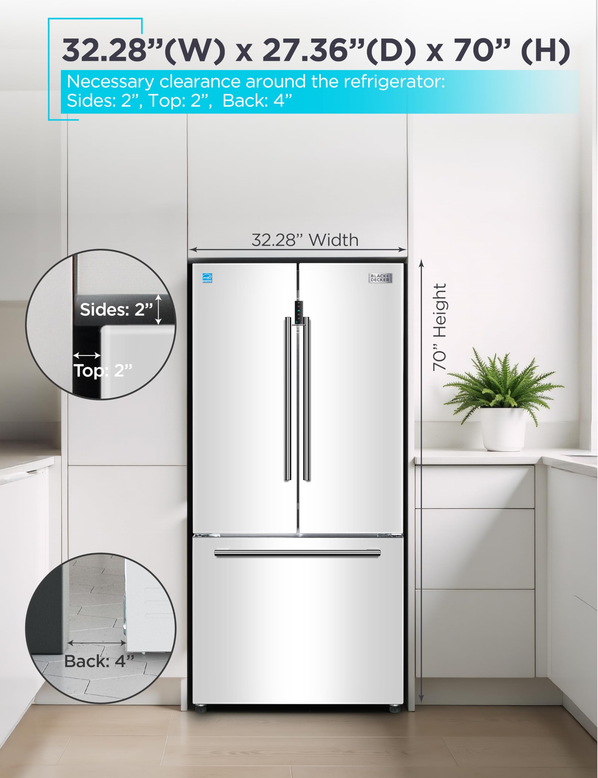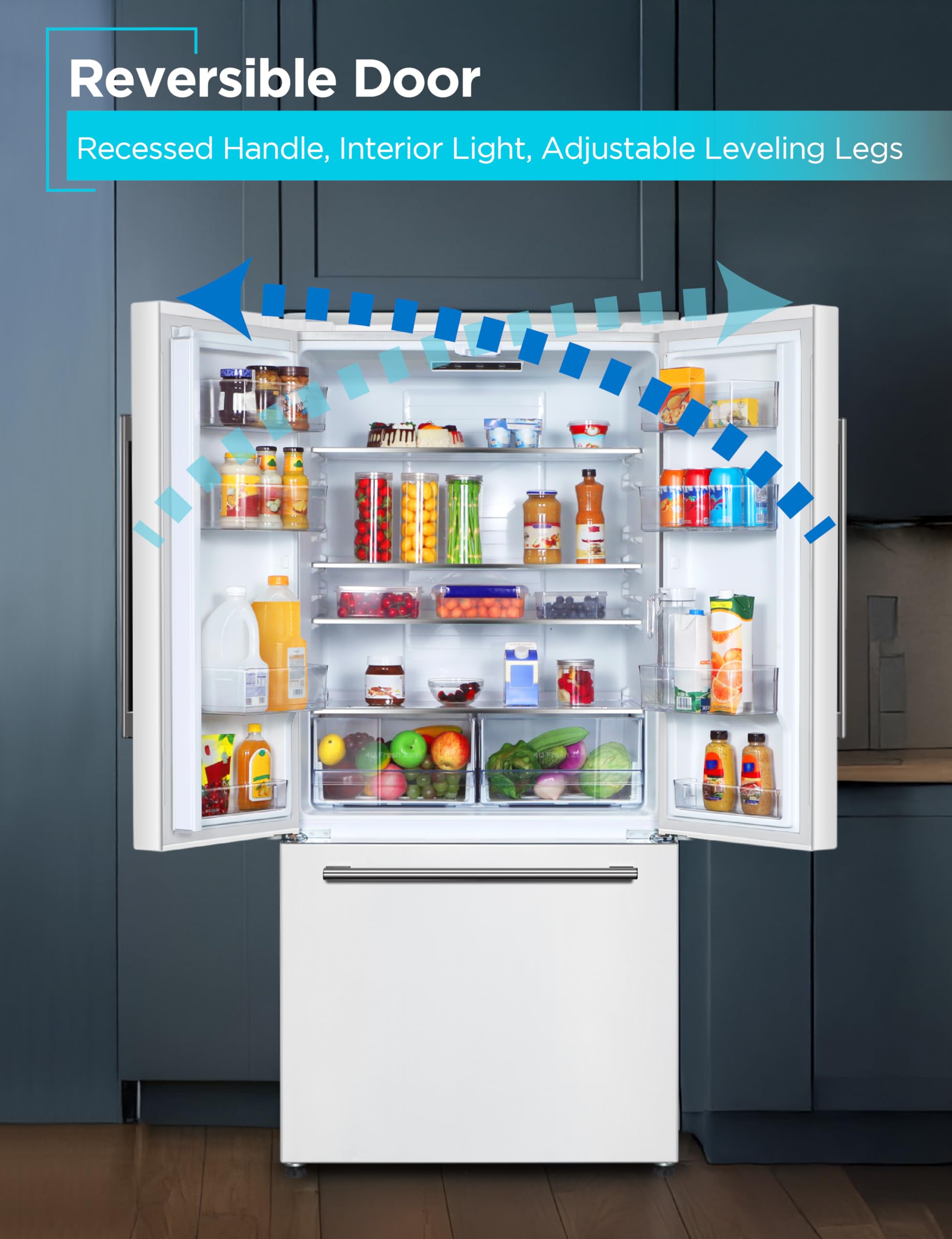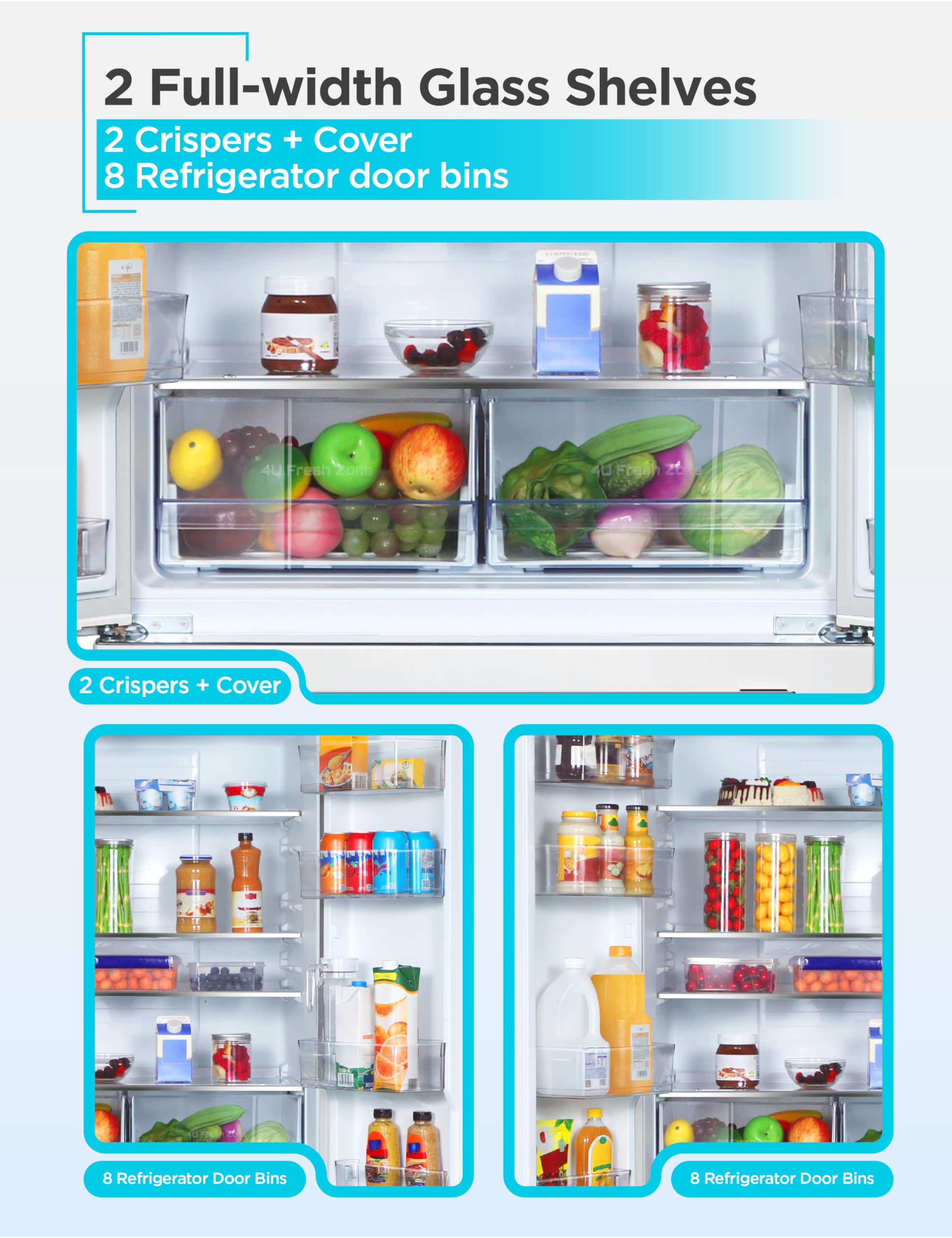 Spacious Organization: With full-width 12.5 cu. ft. fridge and 5.4 cu. ft. total freezer capacity, our French door fridge with freezer offers ample storage space and options for all your essentials
