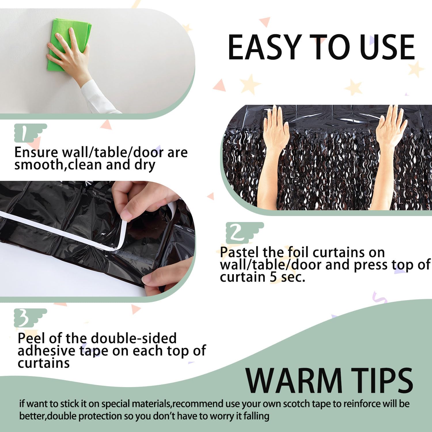 Wavy Shape: Black tinsel curtain have special wavy shape and shining smooth metallic surface, which offer you a full texture that is appealing to the eye, can help you enhance your party atmosphere, adding color and spicing up your party events
