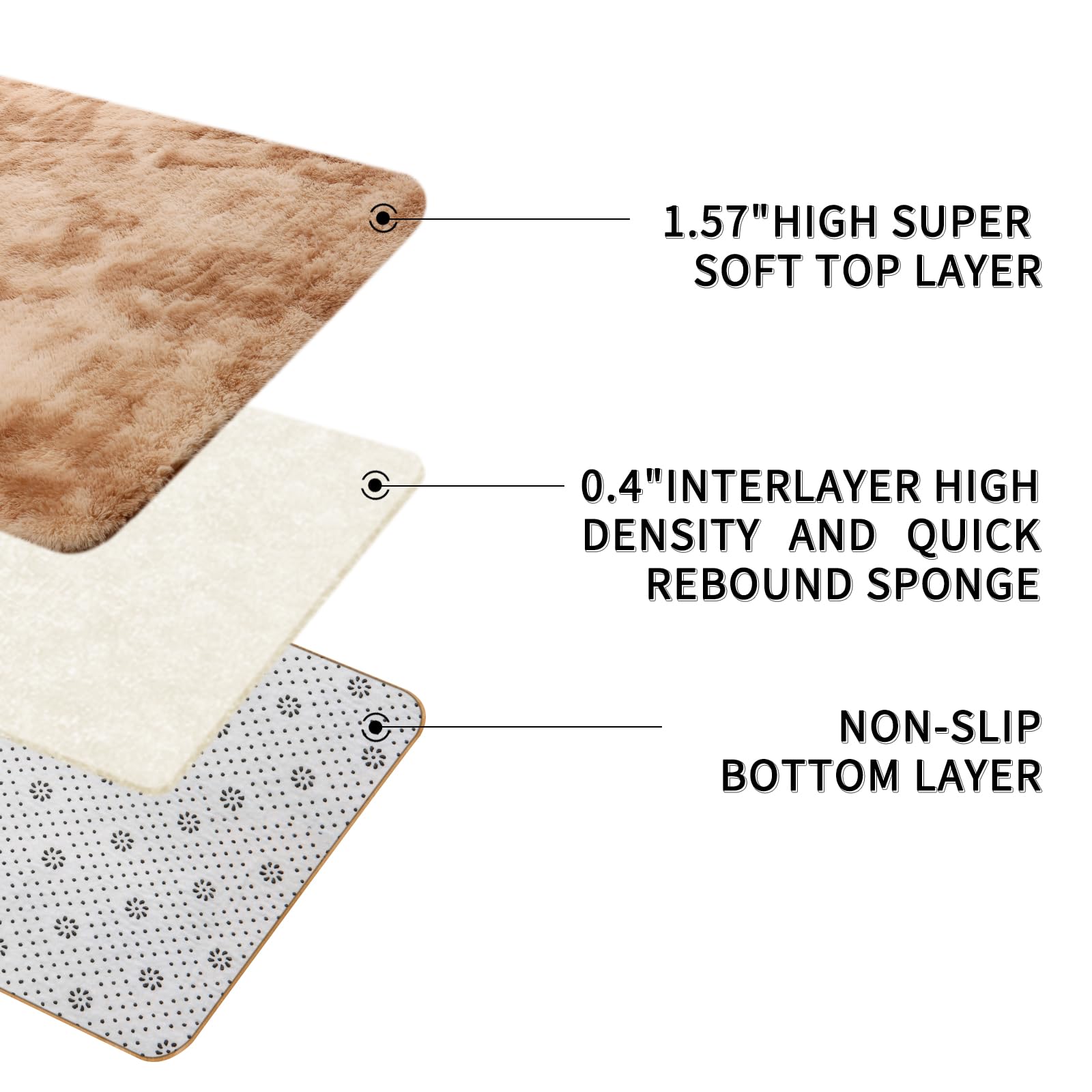【LARGE SIZE 】- Large Area Rug Shag Shaggy Carpet Soft Plush Furry Bedside Rug is approx 4 cm high, soft long hair surface, and 10mm thick sponge interlayer, not easy to shed, not easily contaminated by dust, no odor, not easy to fade.