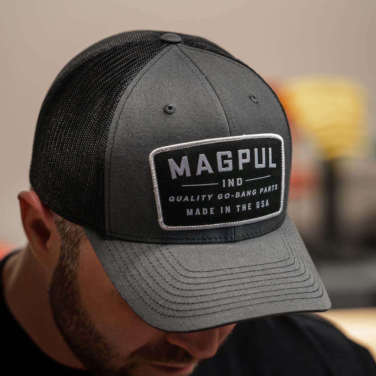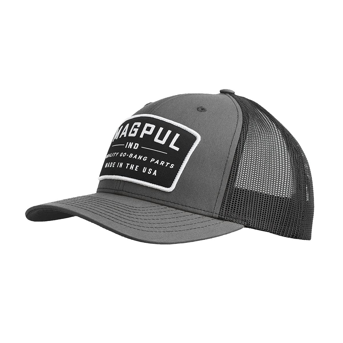 Description The Magpul Wordmark Patch Trucker is a structured fit, six-panel trucker-style hat. It's got a mesh back and a mid-crown design, so the brim rests comfortably just above your brow. There's no button on the top of the hat, making it great for use with over the head hearing protection. One size fits most with its adjustable snapback design, hat sizes 7 - 7 3/4.